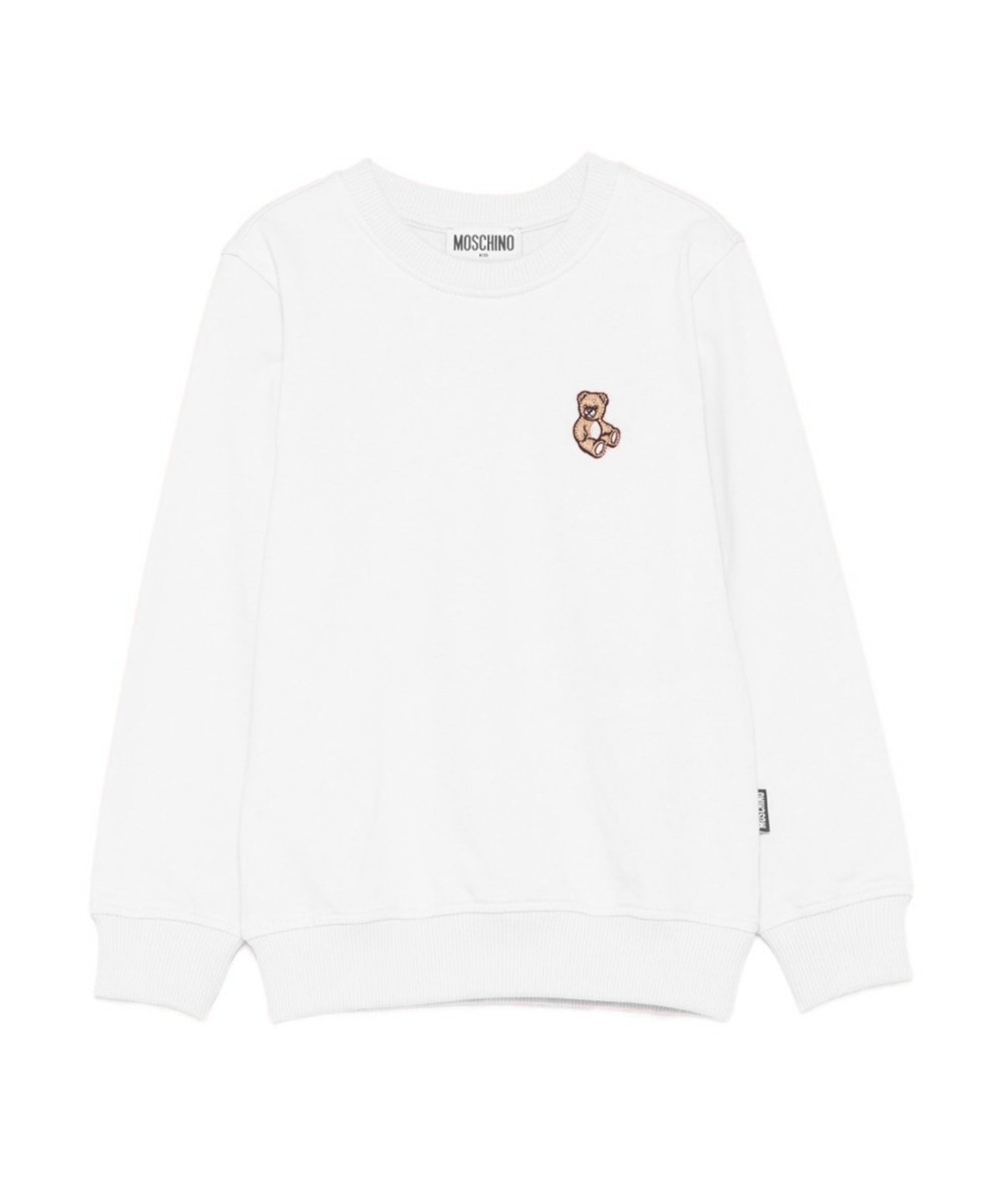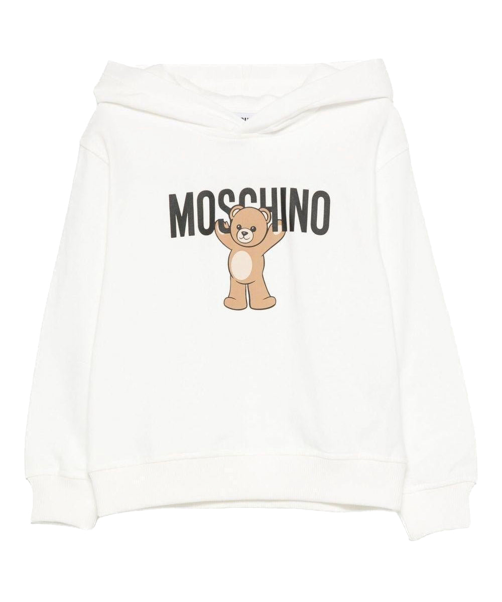 T-shirt panna Moschino Kids in cotone con stampa orsetto Teddy e logo. Comfort e stile per un look casual e riconoscibile ogni giorno.
