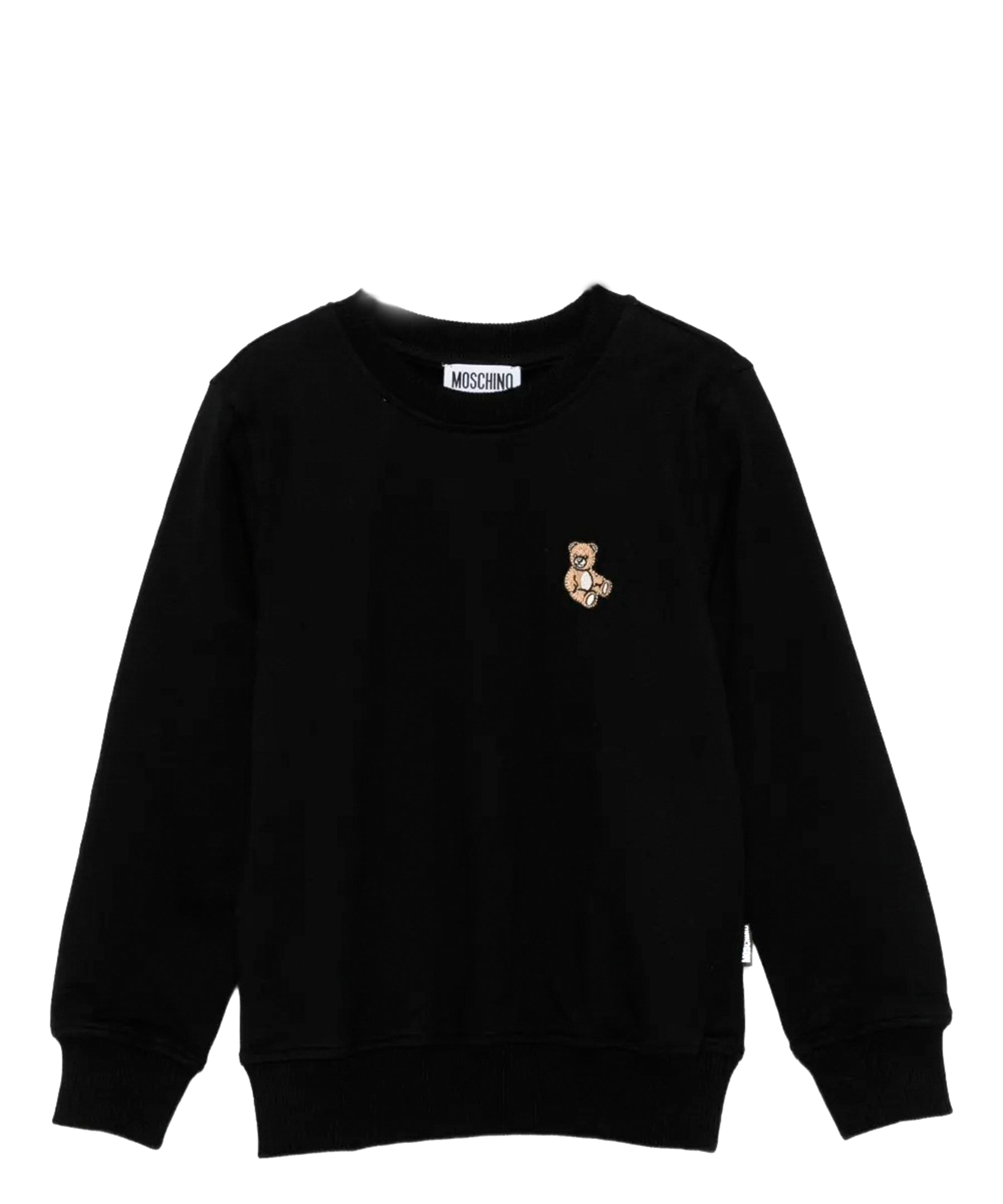Cappello nero Moschino Kids in jersey con logo e orsetto Teddy stampato. Un accessorio comodo e stiloso per look casual e urban dei più piccoli.