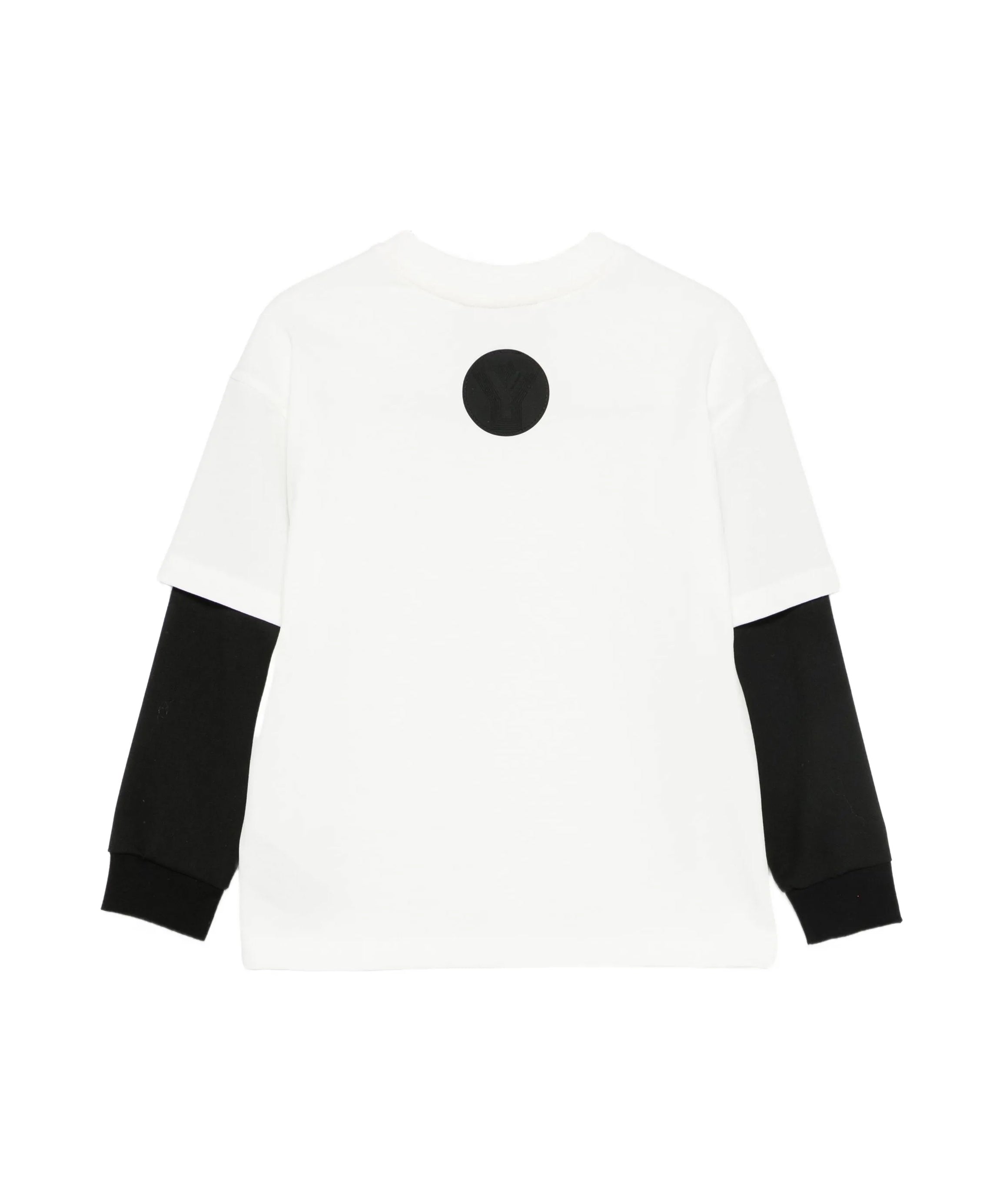 Yes London Kids T-Shirt Bianca Doppia Manica Lunga Total White con Targhetta Logo per Bambini