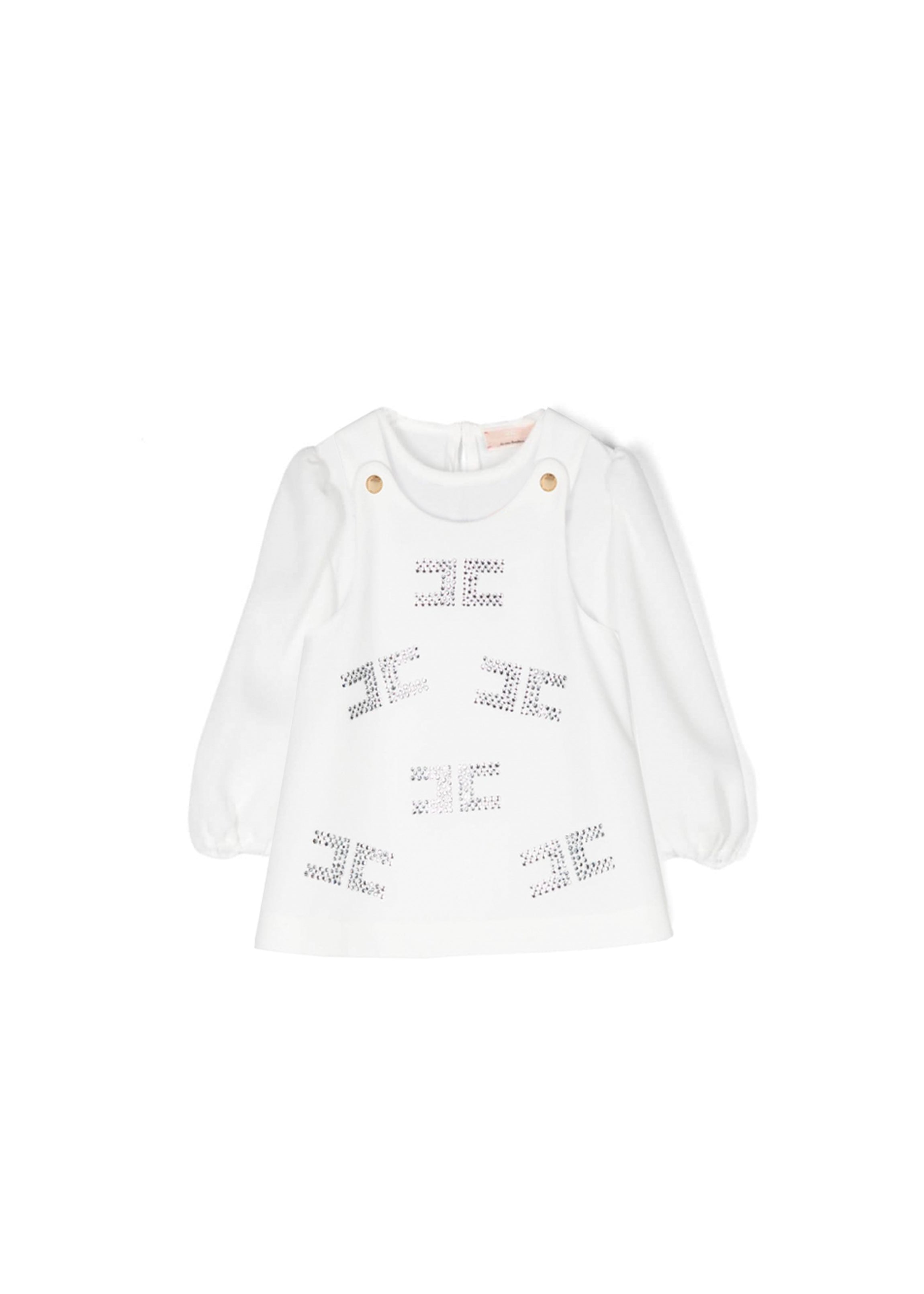 Elisabetta Franchi My Little Girl Ivory Dress with Rhinestones and Shirt for Newborns