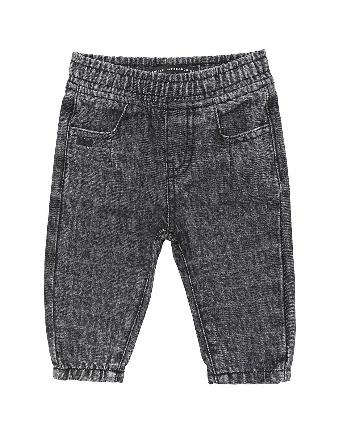 Alessandrini Kids Denim Stone Wash Jeans Grigio con Logo a Laser All-Over per Neonati