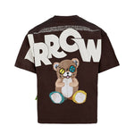Il design marrone presenta girocollo classico e maniche corte, arricchito da una grafica con motivo Teddy Bear, smile a zampa e logo testuale. Un mix unico che rende questa T-shirt versatile e facilmente abbinabile a jeans, joggers o shorts per outfit pratici e di tendenza.