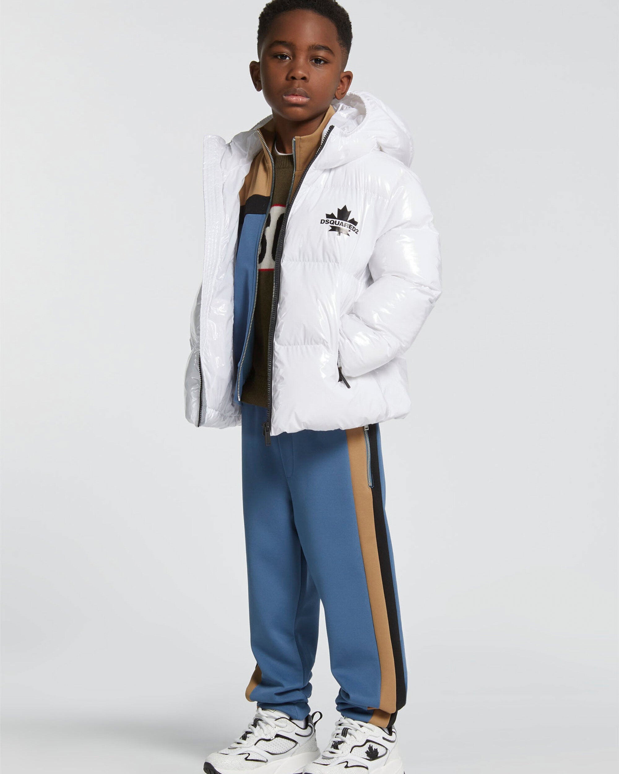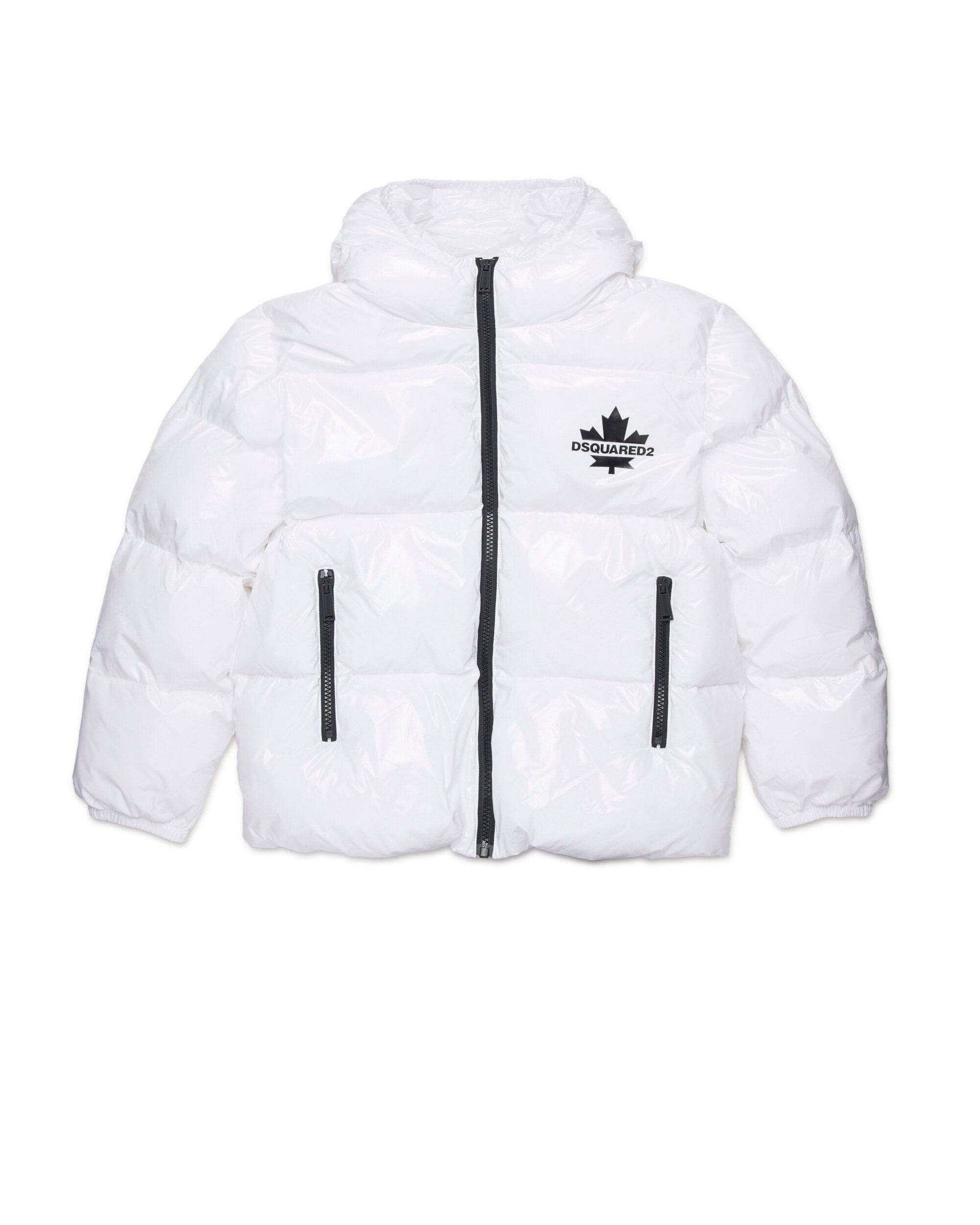 Dsquared2 Kids Giubbino Puffer Bianco con Maple Leaf per Bambini