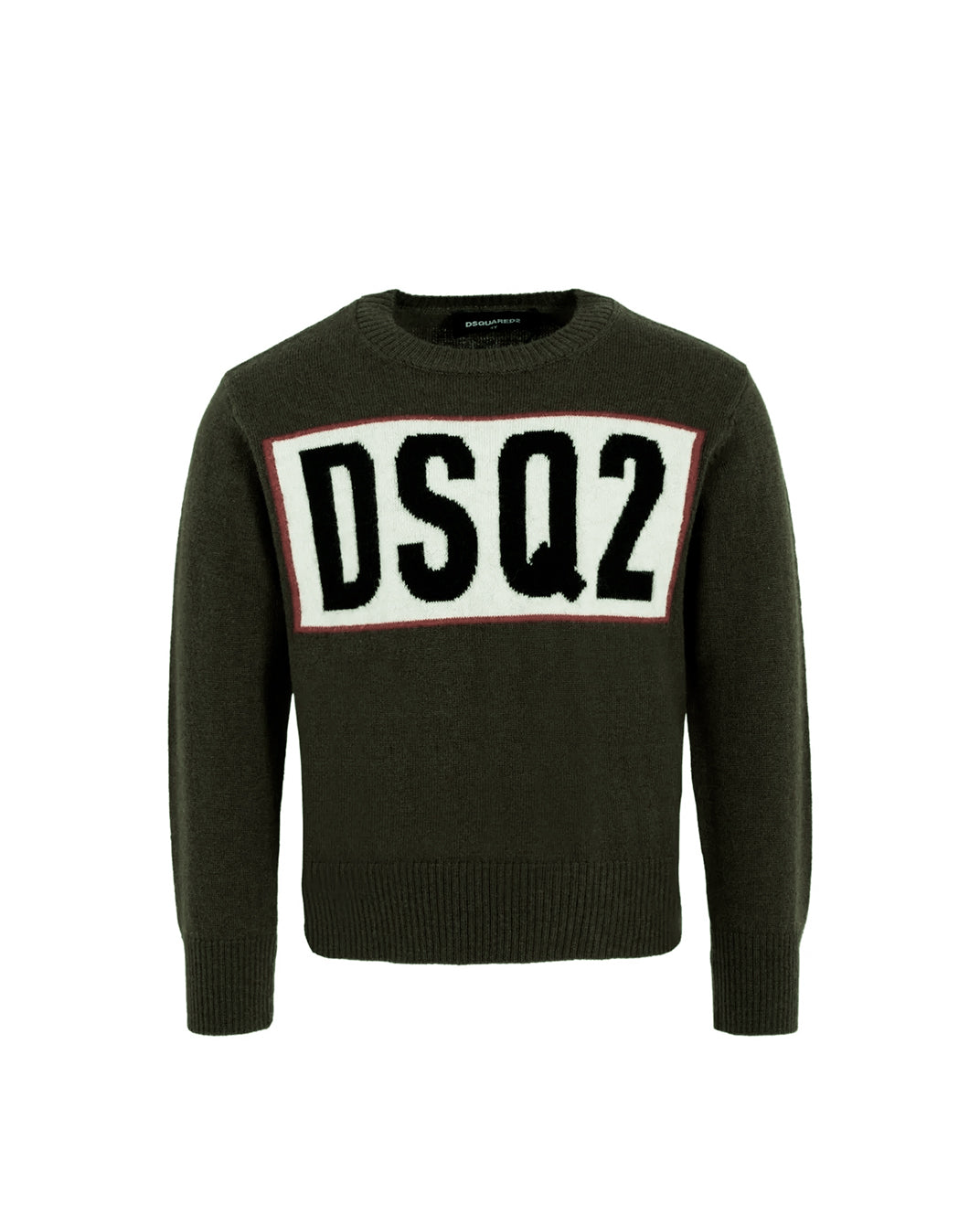 DSQUARED2 KIDS Maglione Verde in Lana con Logo a Intarsi per bambini