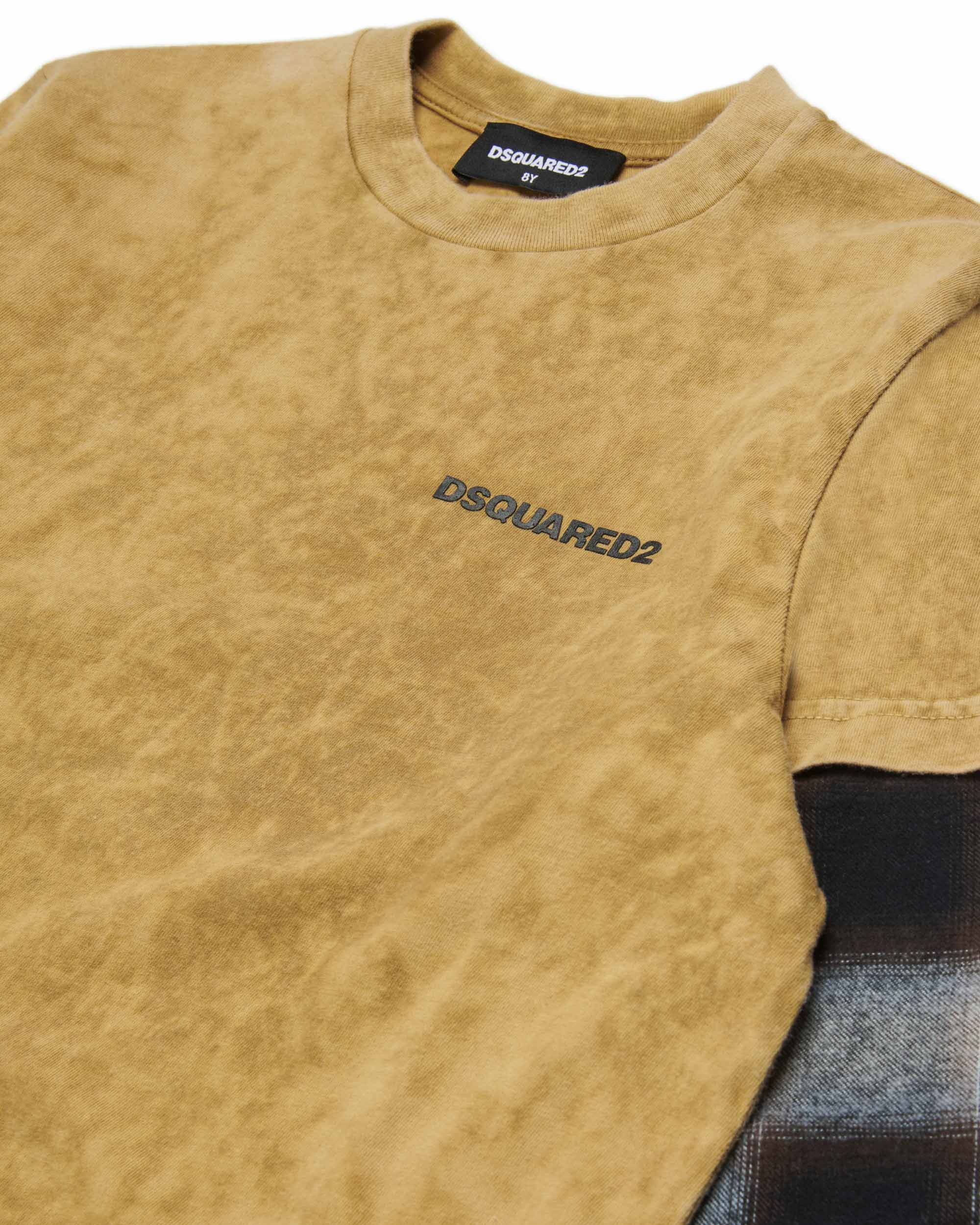 Dsquared2 Kids T-shirt Marrone con Maniche a Quadri per Bambini - Florence Kids