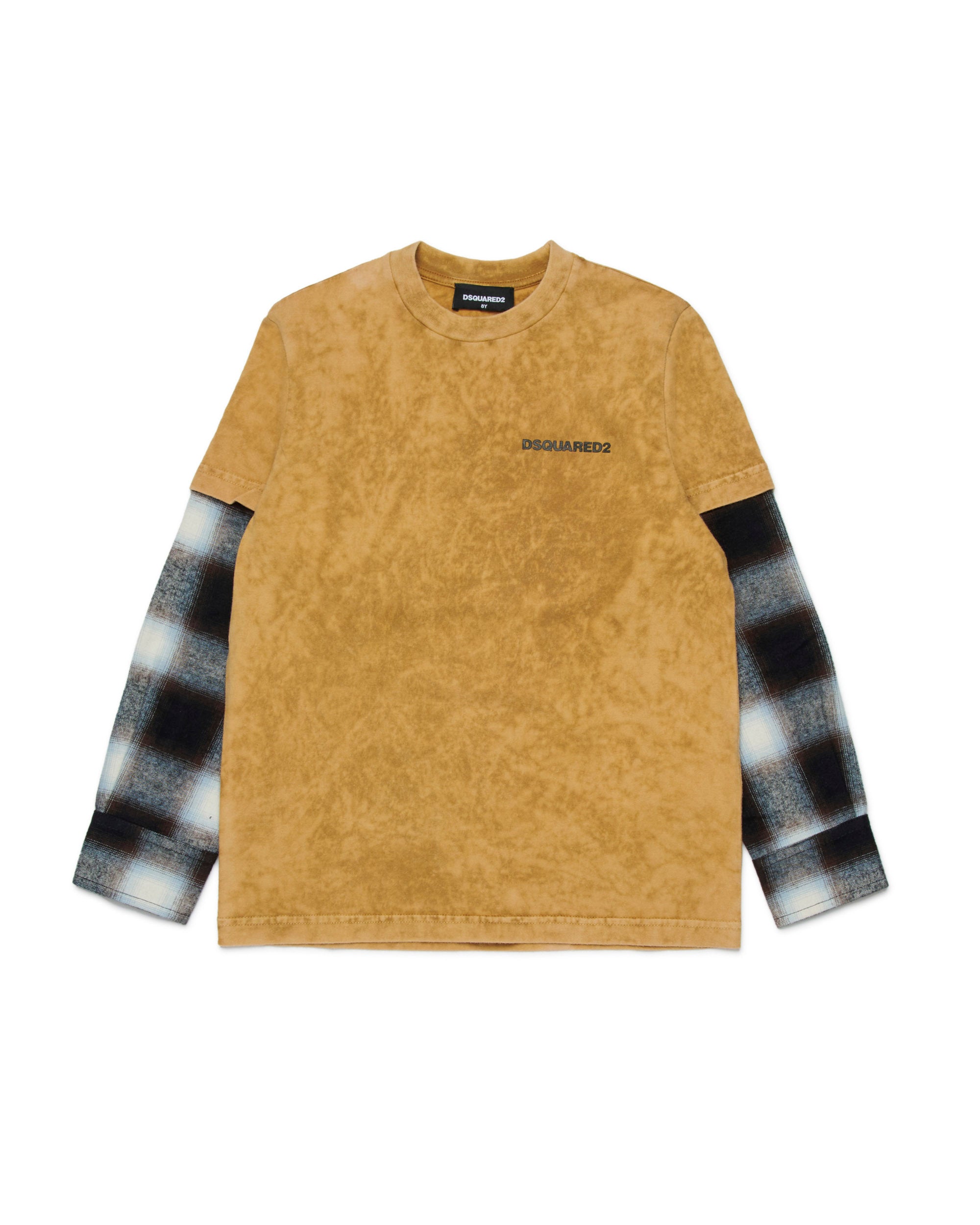 Dsquared2 Kids T-shirt Marrone con Maniche a Quadri per Bambini