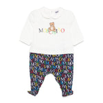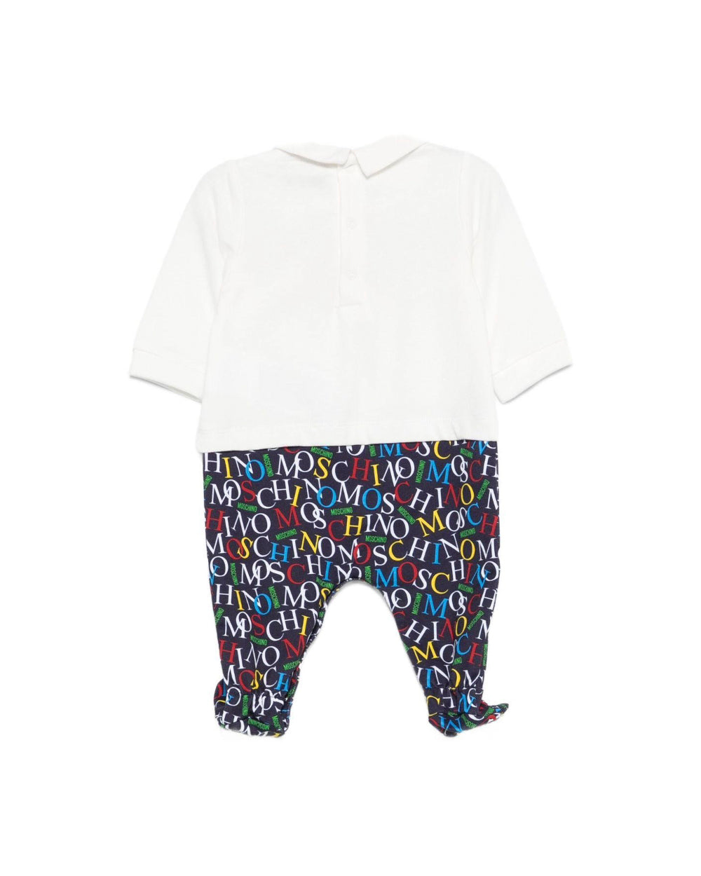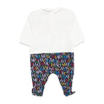 Moschino Kids Tutina Bianca/Blu Navy con Logo All Over per Neonati - Florence Kids