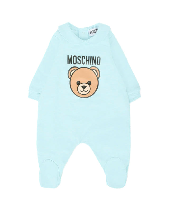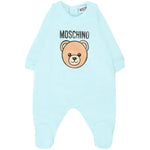 Moschino Kids Tutina Celeste con Logo Teddy per Neonati