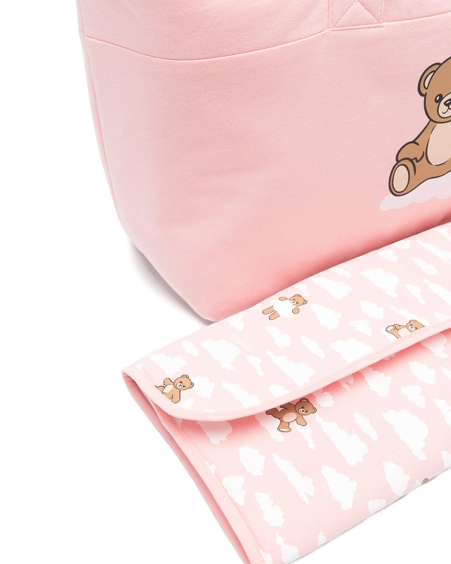 Moschino Kids Borsa Mamma+Fasciatoio Rosa con Logo Teddy Bear