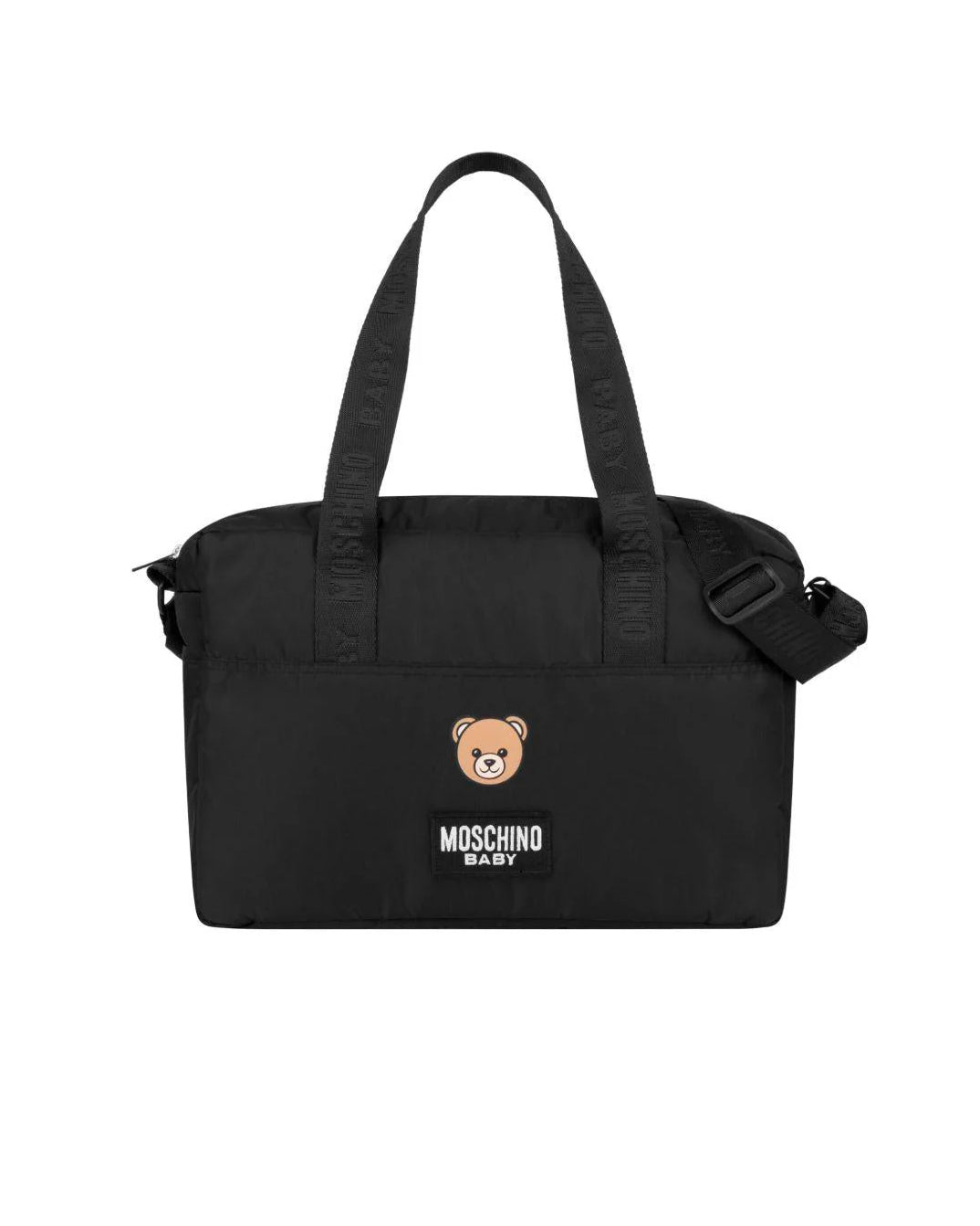 Moschino Kids Borsa Mamma Nera con Stampa Logo Teddy per Neonati