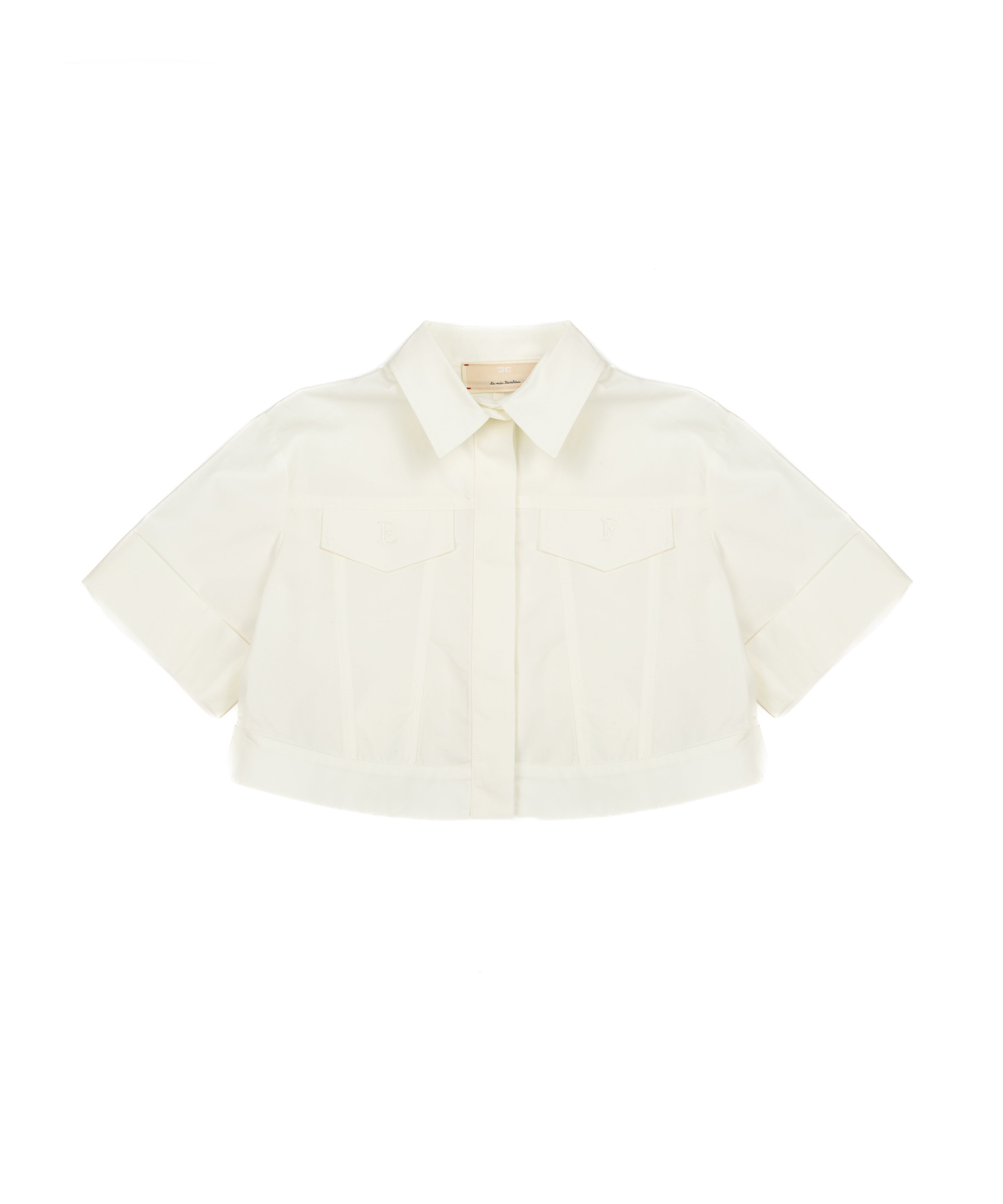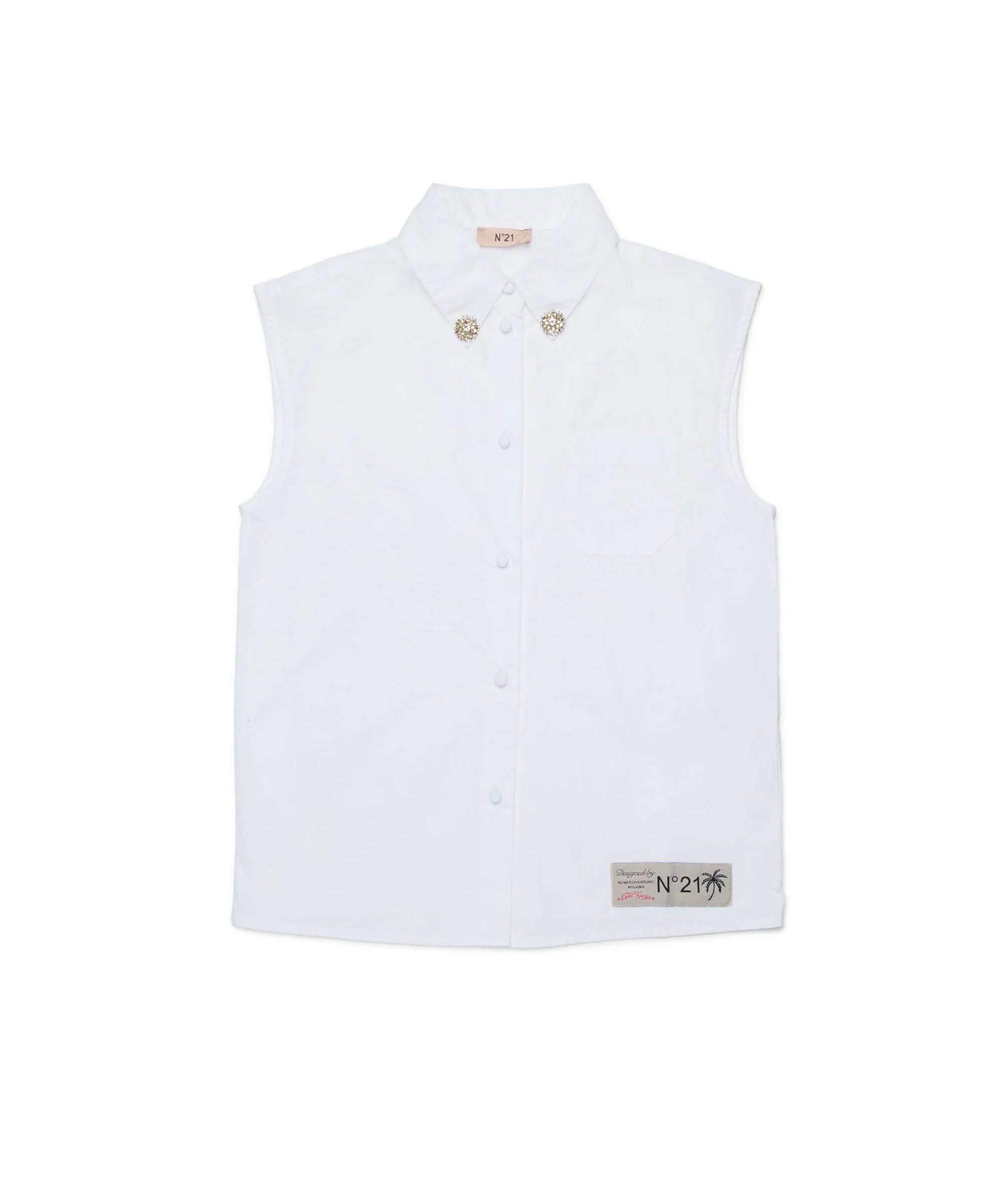 N21 Kids Camicia Bianca Cropped con Colletto a Contrasto e Ricamo Logo per Bambine