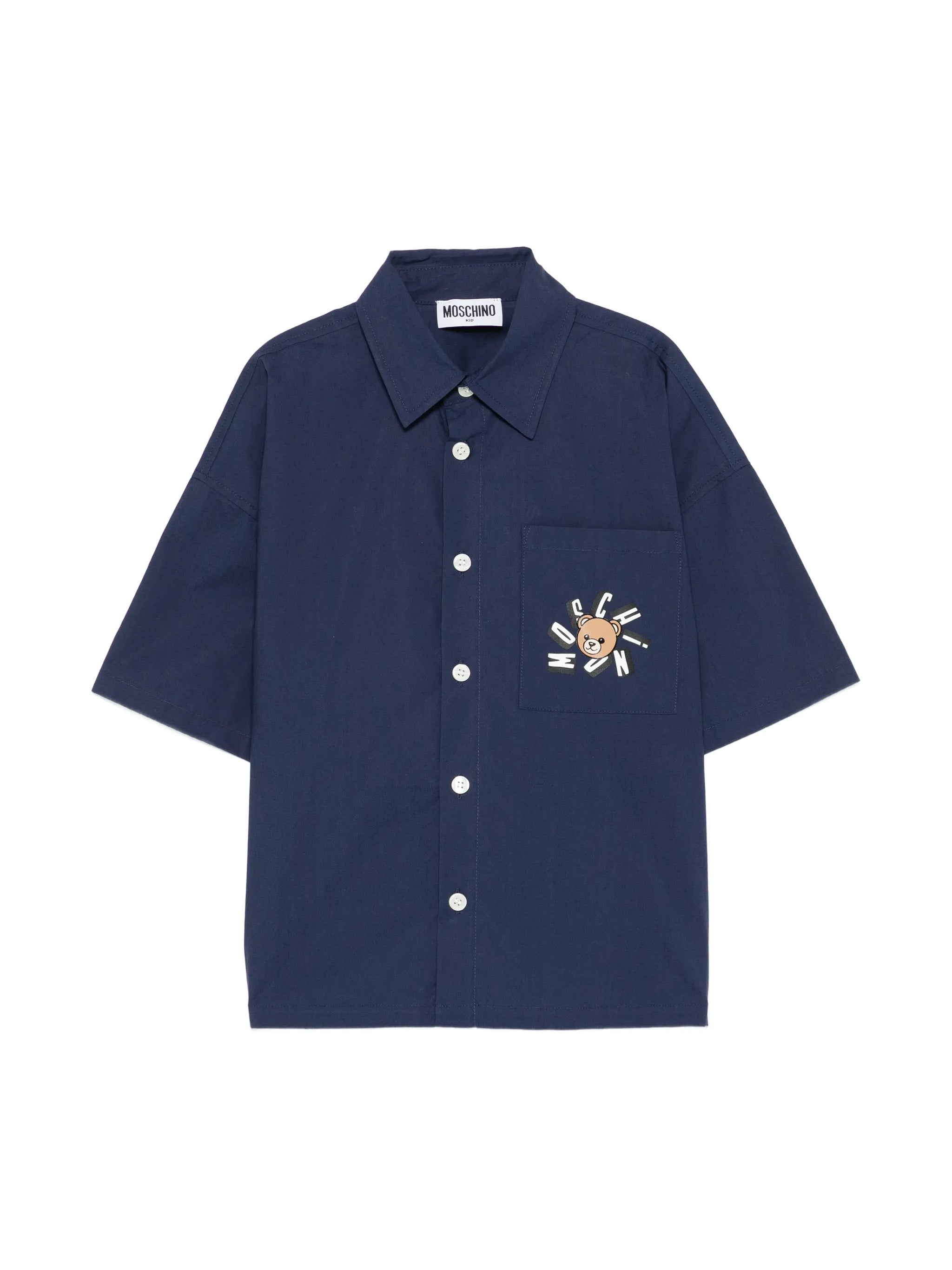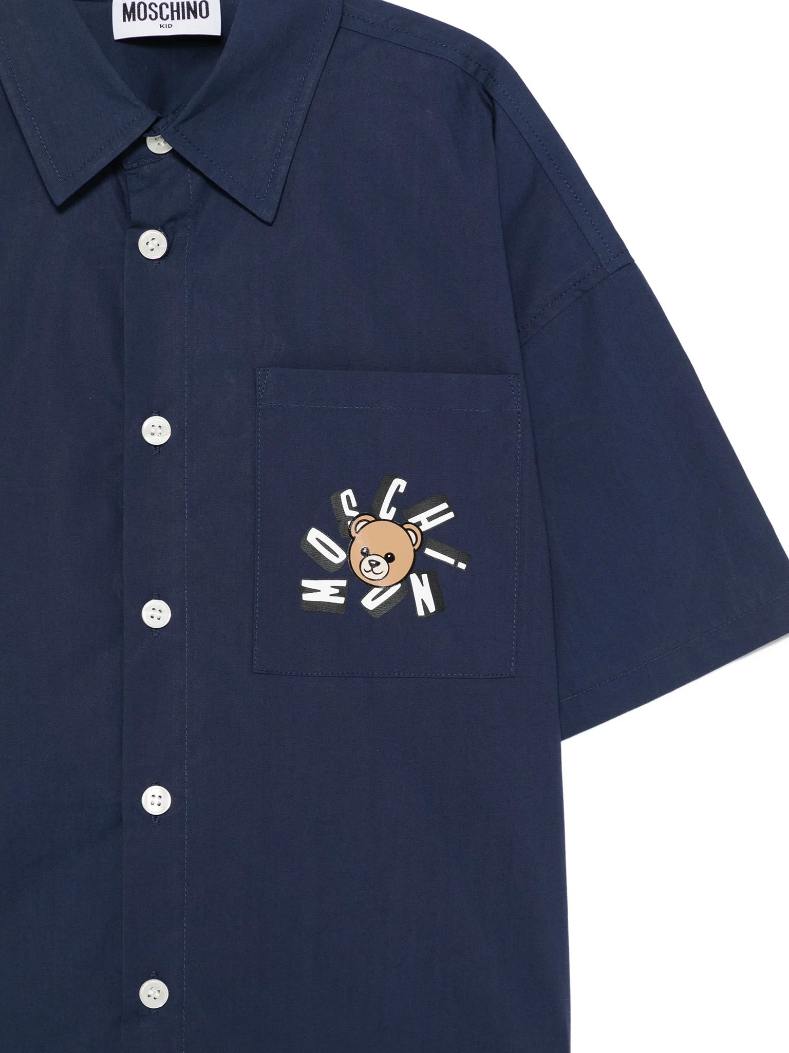 Moschino Kids Camicia Blu Navy con Logo Teddy Bear per Bambini