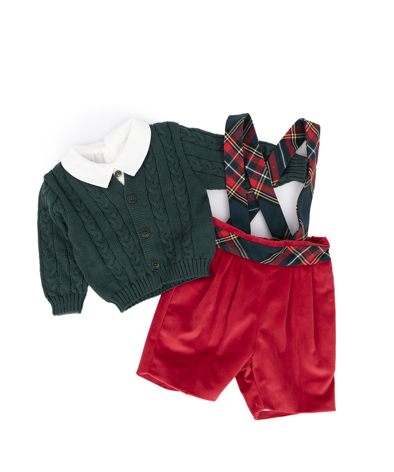 Barcellino Kids Completo 3 pezzi con bretelle e papillon Grigio/beige per Neonati