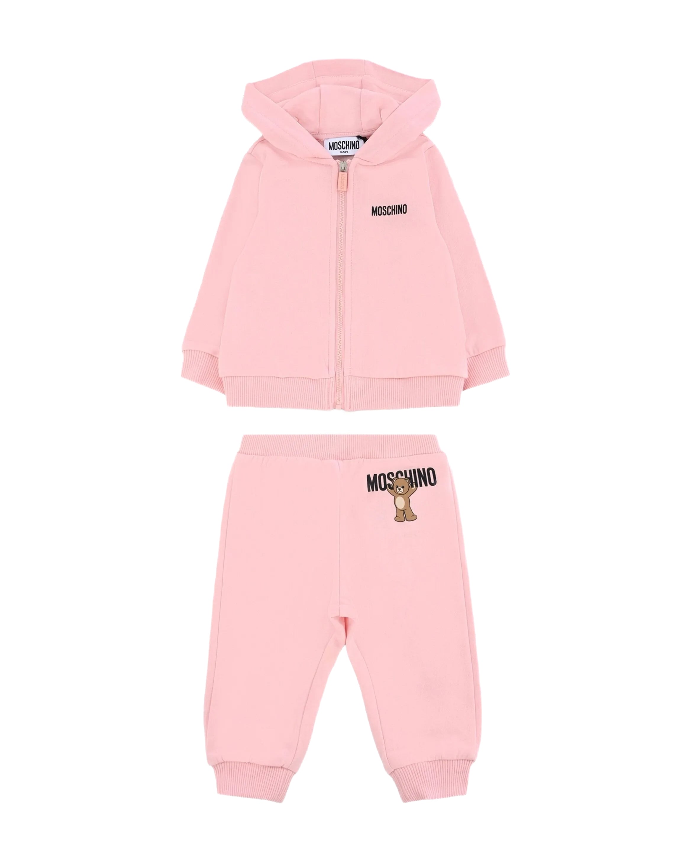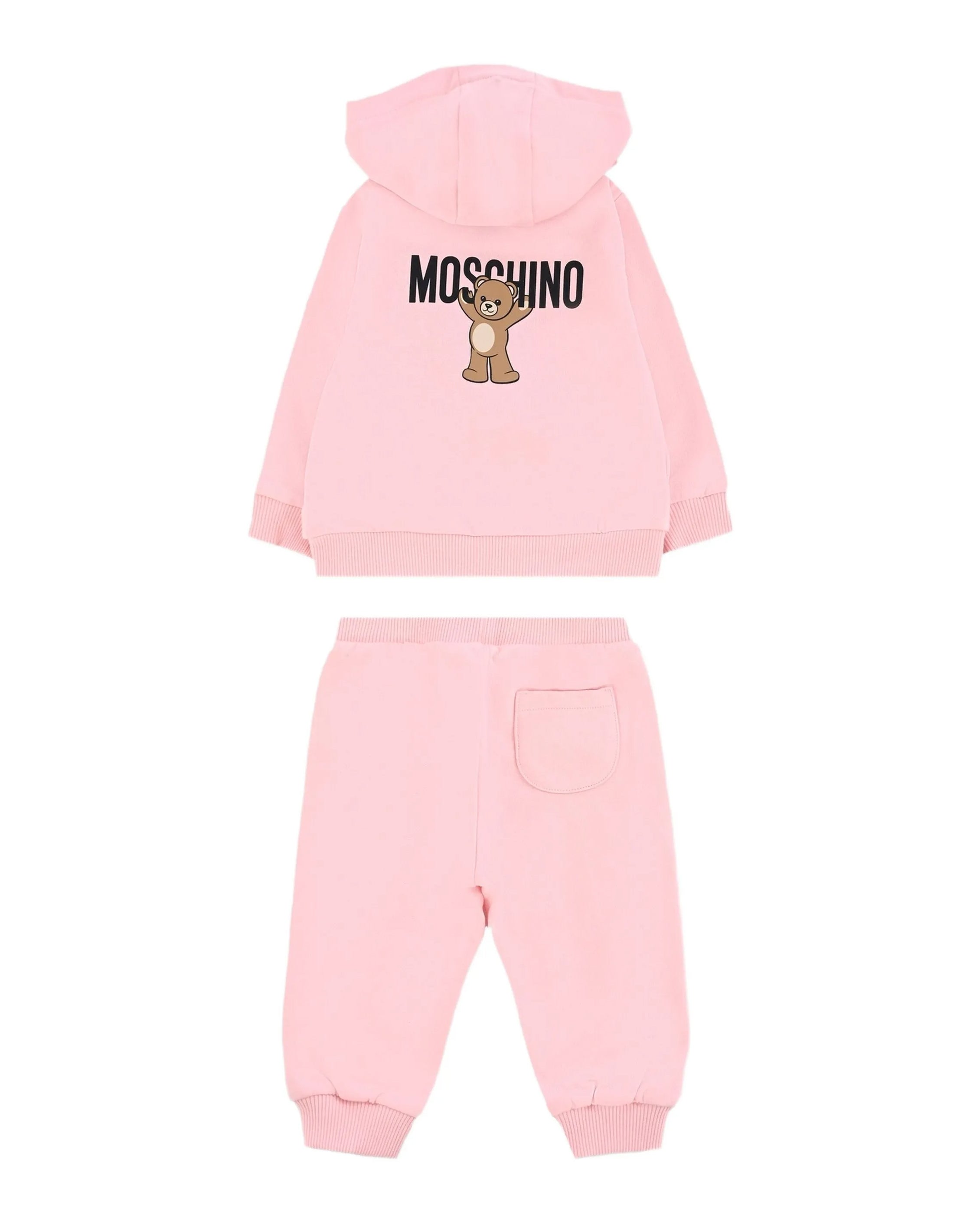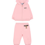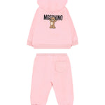 Moschino Kids Completo Sugar Rose Felpa con Cappuccio e Pantaloni Abbinati con Logo Teddy per Neonate