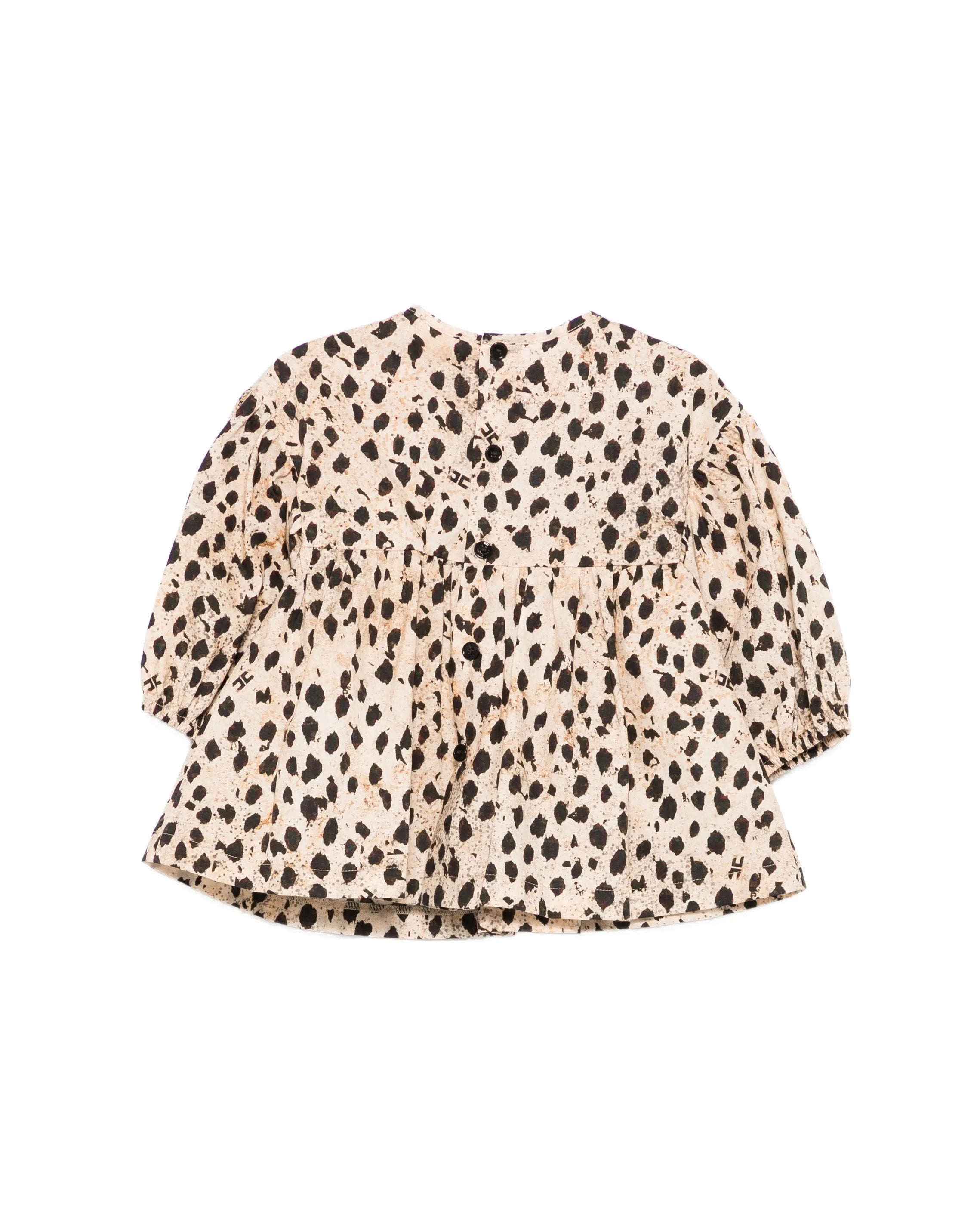 La fantasia animalier, reinterpretata in chiave baby, dona personalità senza risultare eccessiva. Perfetto da indossare con leggings o collant nelle mezze stagioni, oppure da solo per un look casual chic da giorno.