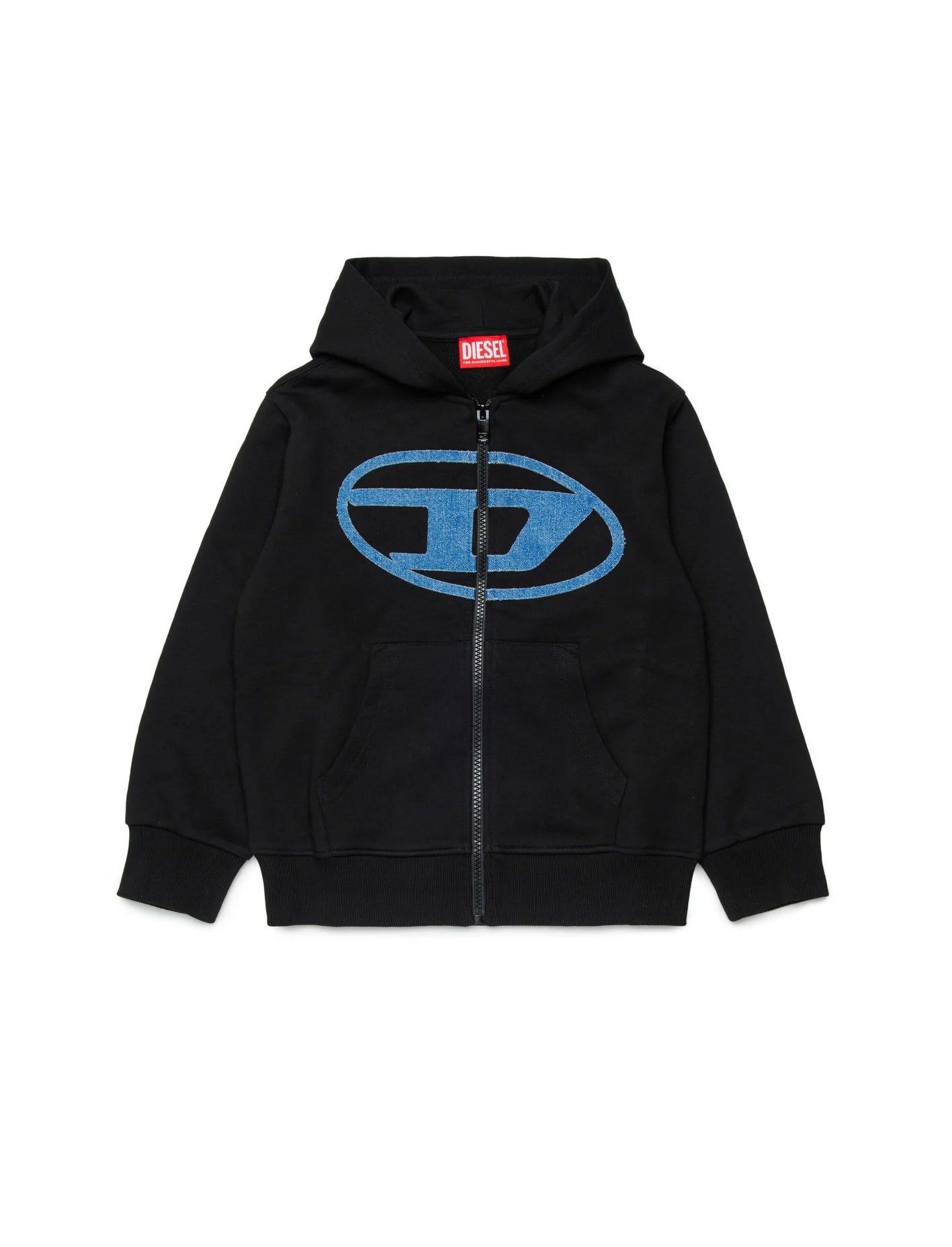Diesel Kids Felpa Nero con Logo in Jeans per Bambini