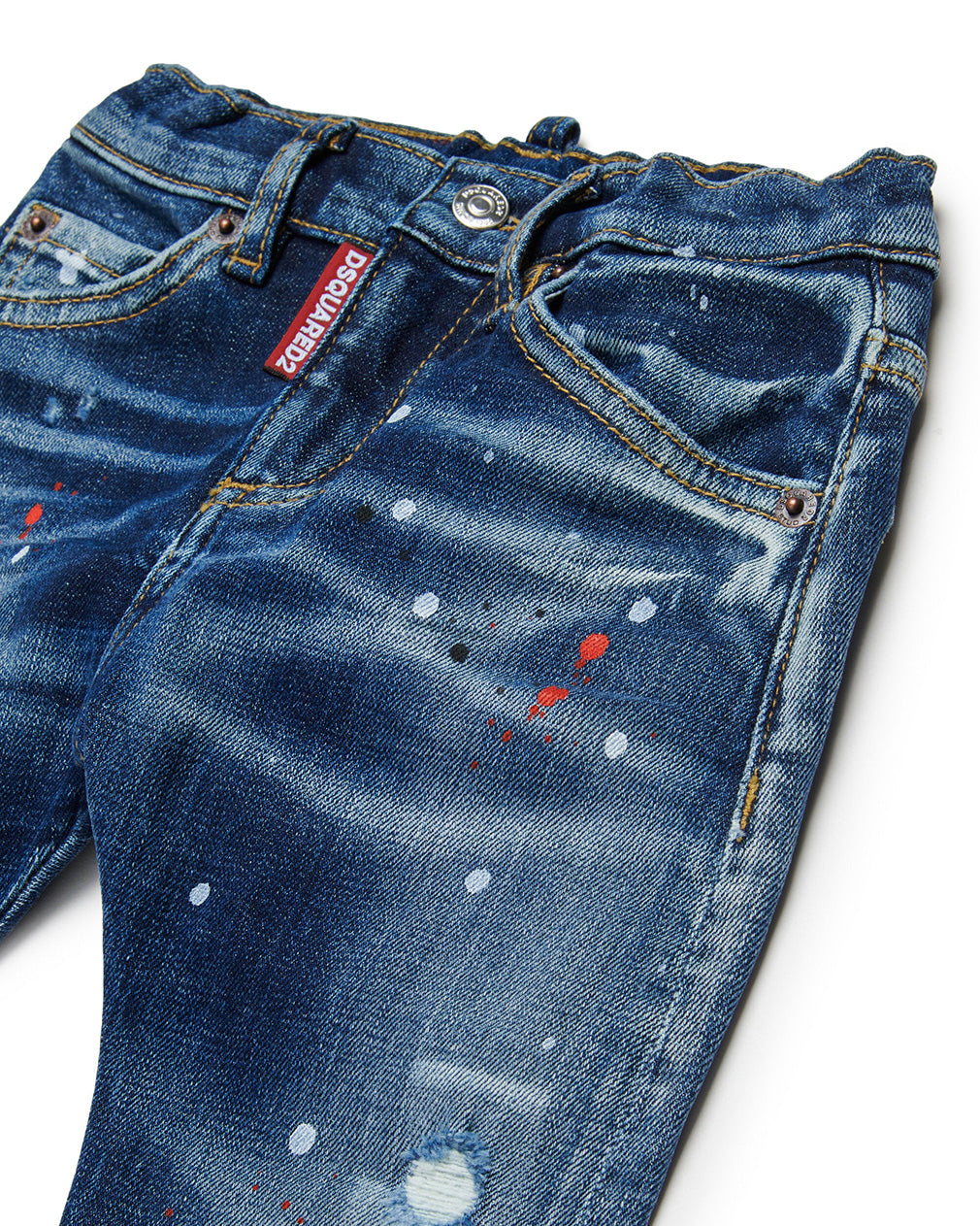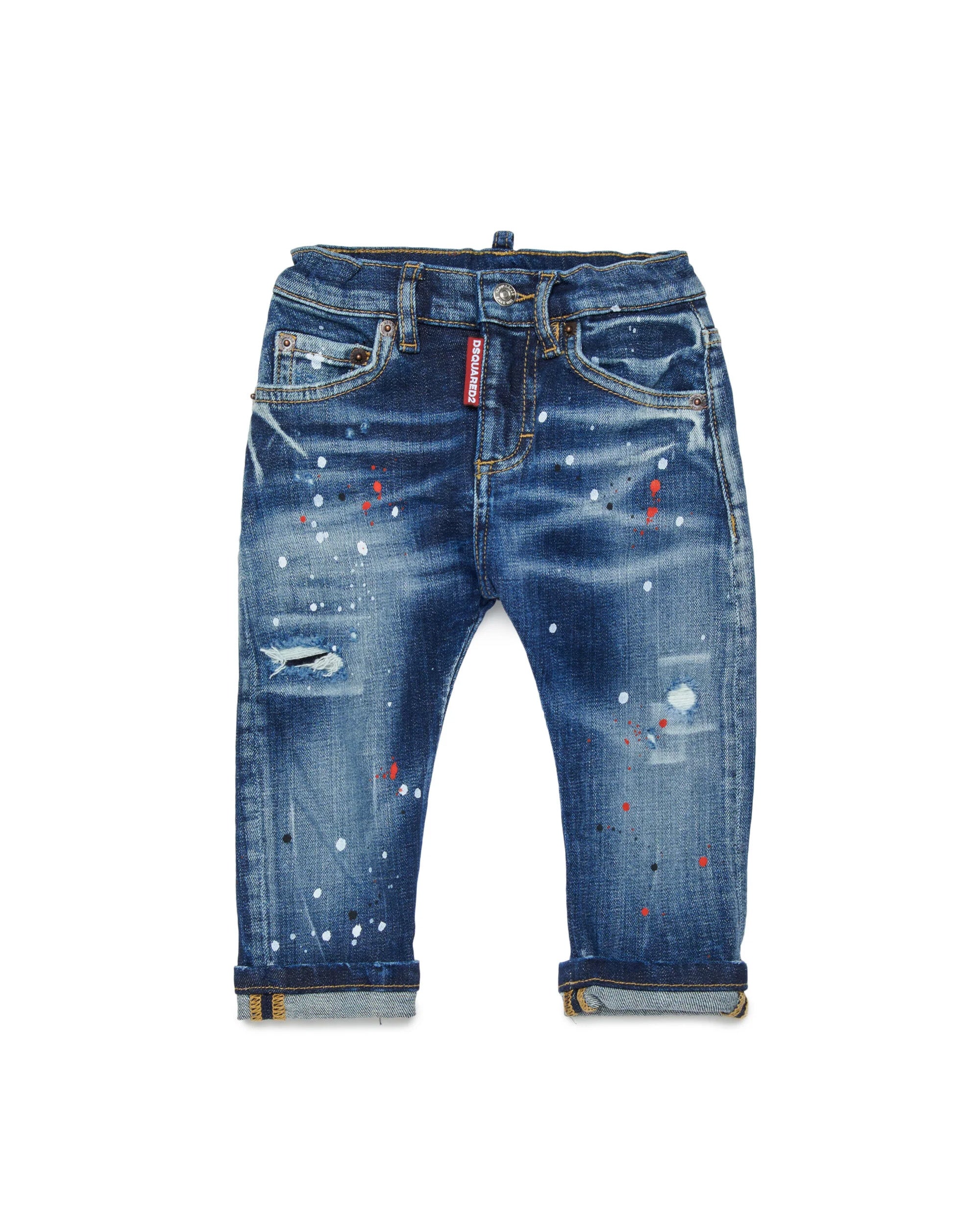 Dsquared2 Kids Jeans Denim Blu con Lavaggio effetto " Vernice" per Neo - Florence Kids