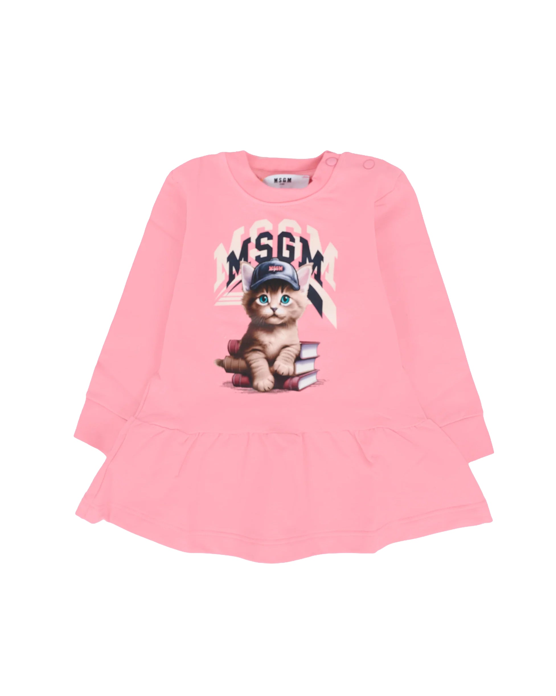 Msgm Kids Abito Rosa con Stampa Cat Logo per Neonate - Florence Kids