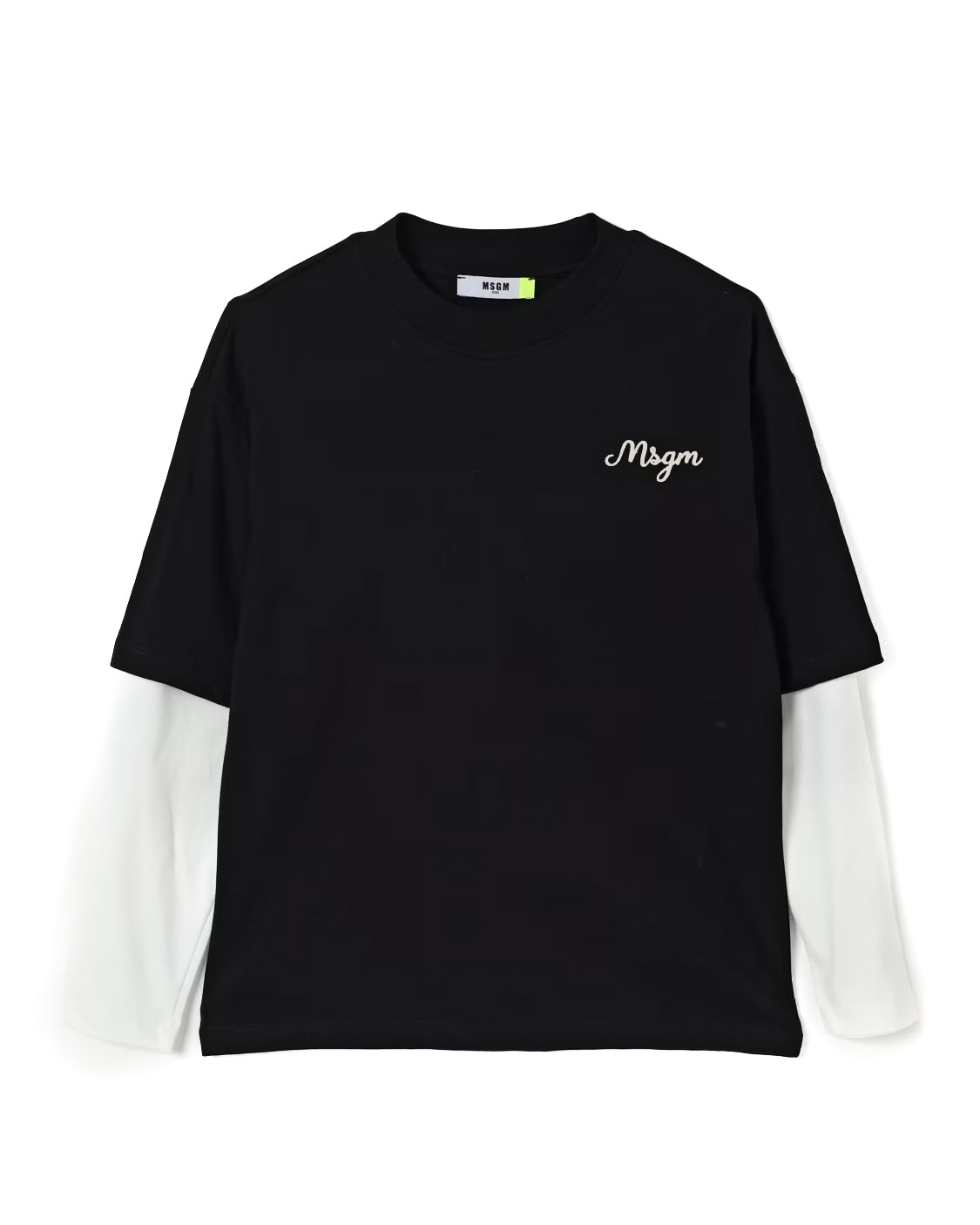 Msgm Kids T-shirt Doppia Manica Lunga Nero/Bianco per Bamine - Florence Kids