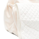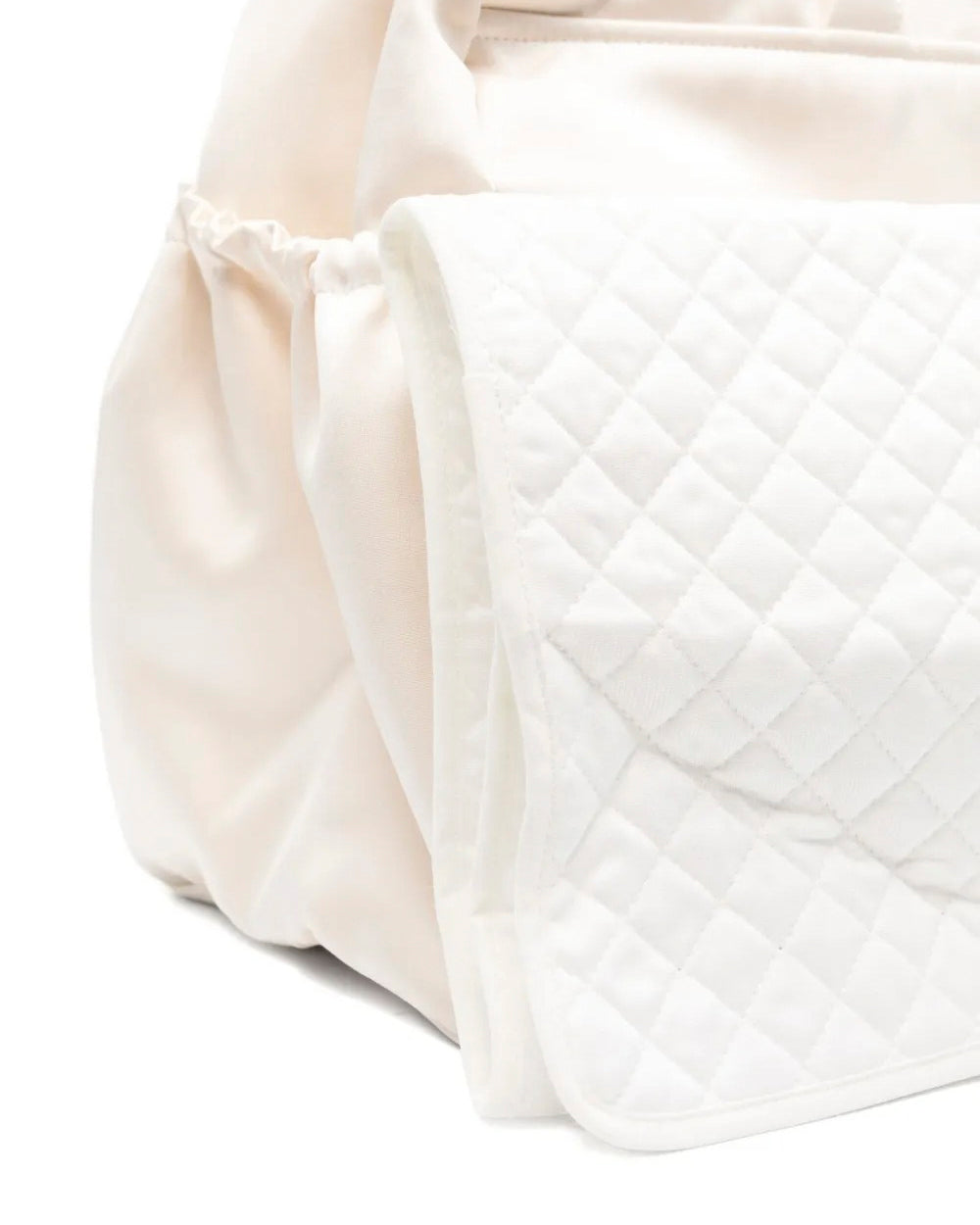 La borsa mamma panna Elisabetta Franchi La Mia Bambina unisce eleganza raffinata e funzionalità per le mamme moderne. Realizzata in tessuto tecnico resistente con logo ricamato in evidenza, è progettata per accompagnare ogni spostamento con stile.