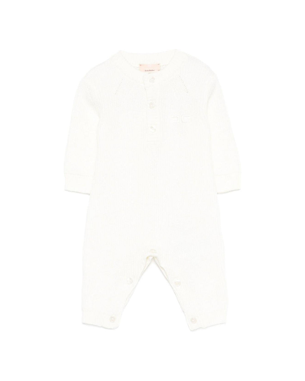 La tutina panna chiaro Elisabetta Franchi La Mia Bambina per neonate è una carezza di stile e comfort, perfetta per i primi giorni di vita. Realizzata in cotone morbido a coste, avvolge con delicatezza grazie alle maniche lunghe e al design con abotttonatura frontale che semplifica i cambi. Il capo è impreziosito da un elegante logo ricamato, capace di aggiungere carattere senza eccessi.