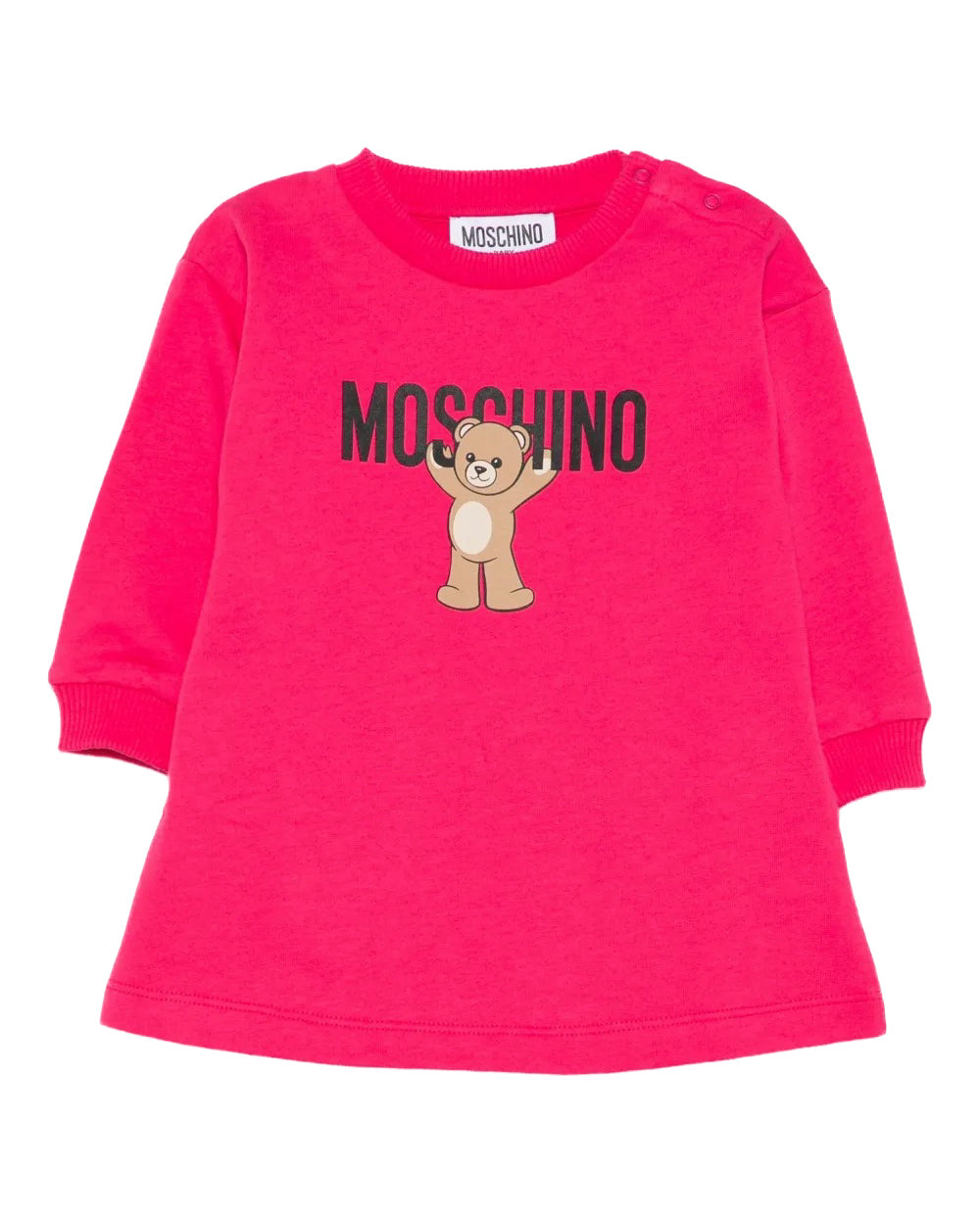 Moschino Kids Abito in Felpa Lampone con Logo per Neonate