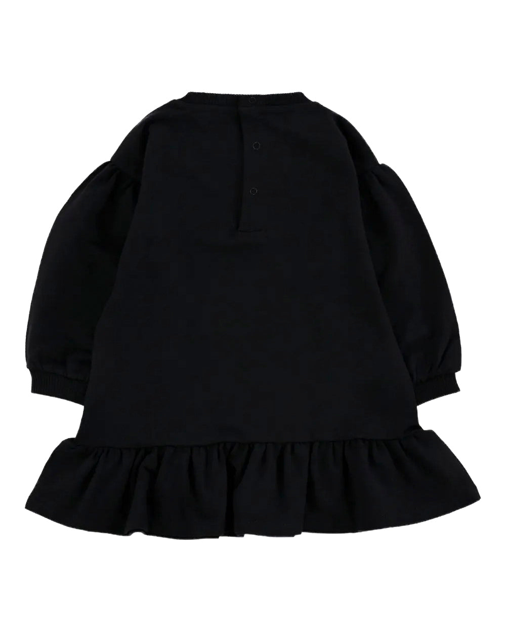 Scopri l’abito nero con volant Moschino Kids per neonate, un capo elegante e pratico perfetto per rendere ogni occasione speciale. Realizzato in cotone felpato, garantisce morbidezza e comfort, ideale anche per la pelle delicata dei primi mesi. Il design presenta maniche lunghe, girocollo, polsini a costine e una chiusura con bottoncino sul retro, per una vestibilità sicura e comoda.
