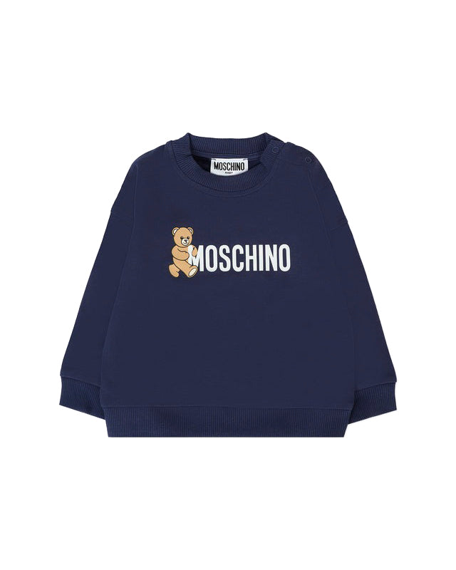 Moschino Kids Felpa Girocollo Blu con Logo per Neonati