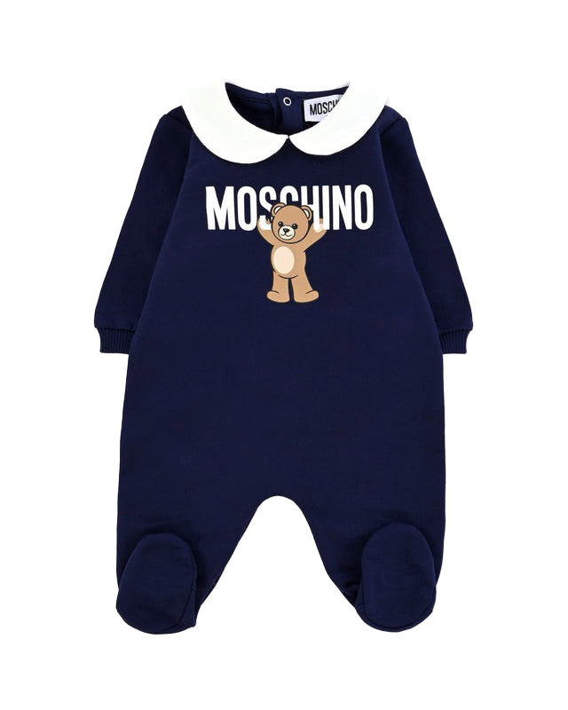 Moschino Kids Tutina Blue Navy con Logo per Neonati