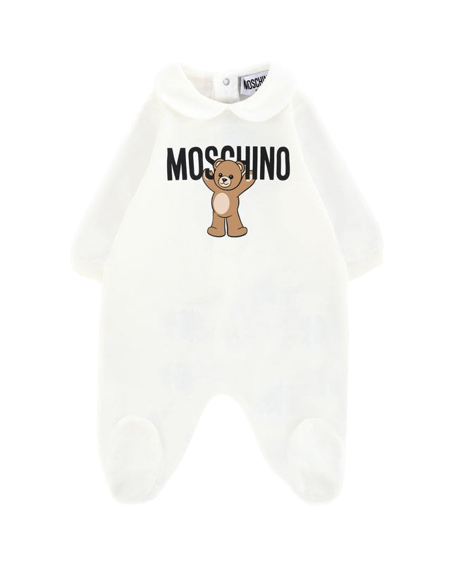 Moschino Kids Tutina Panna con Logo per Neonati