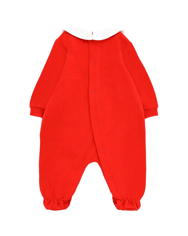 La tutina rossa Moschino Kids per neonati è il mix perfetto di dolcezza, stile e funzionalità. Realizzata in cotone morbido e resistente, coccola la pelle delicata dei più piccoli. Il design presenta un grazioso colletto Peter Pan, che aggiunge un tocco raffinato, e un’adorabile stampa con orsetto Teddy, simbolo iconico del brand.