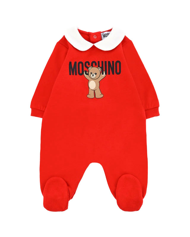 Moschino Kids Tutina Rossa con Logo per Neonati