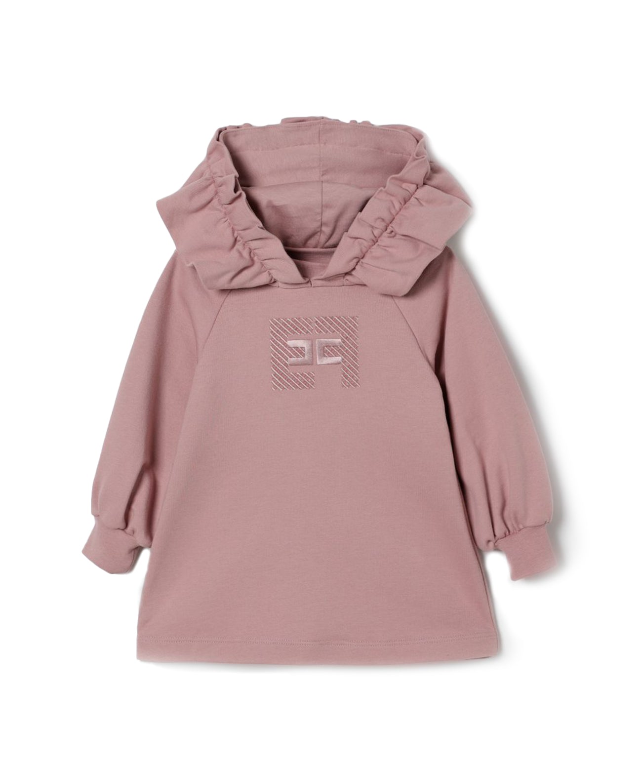Elisabetta Franchi La Mia Bambina Felpa Panna con Cappuccio e Logo per Neonate