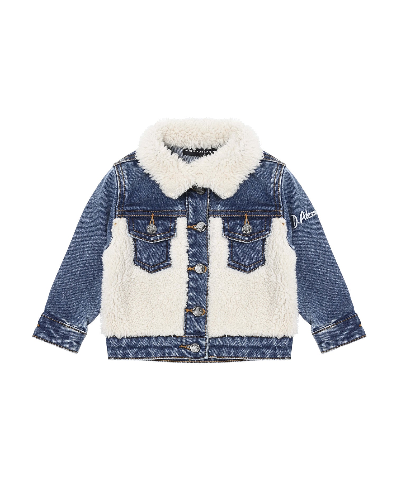 Alessandrini Kids Giacca in Denim Invernale con Pelliccia Bianca per Neonati
