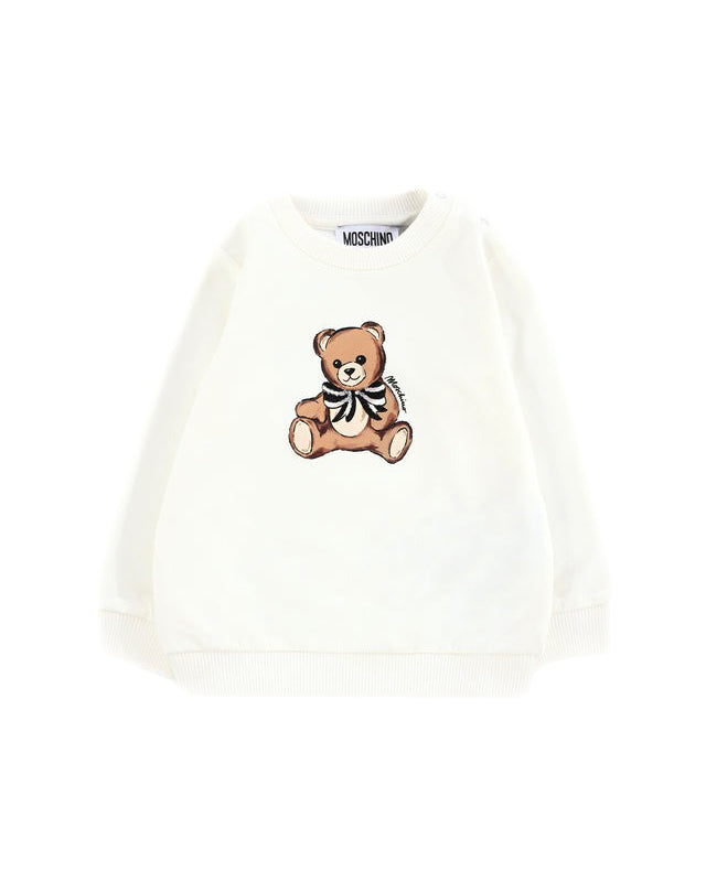 Moschino Kids Felpa Panna Girocollo con Teddy per neonate