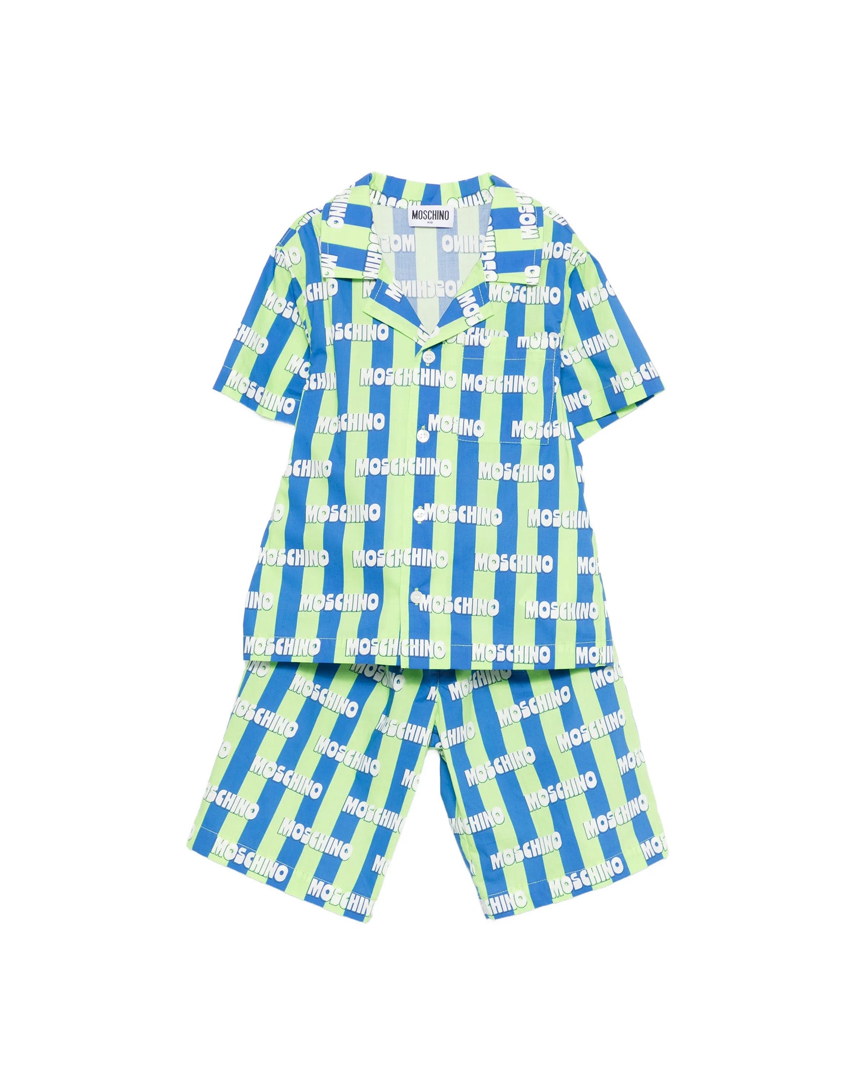 Moschino Kids Completo Camicia+Bermuda Verde/Blu per Bambini