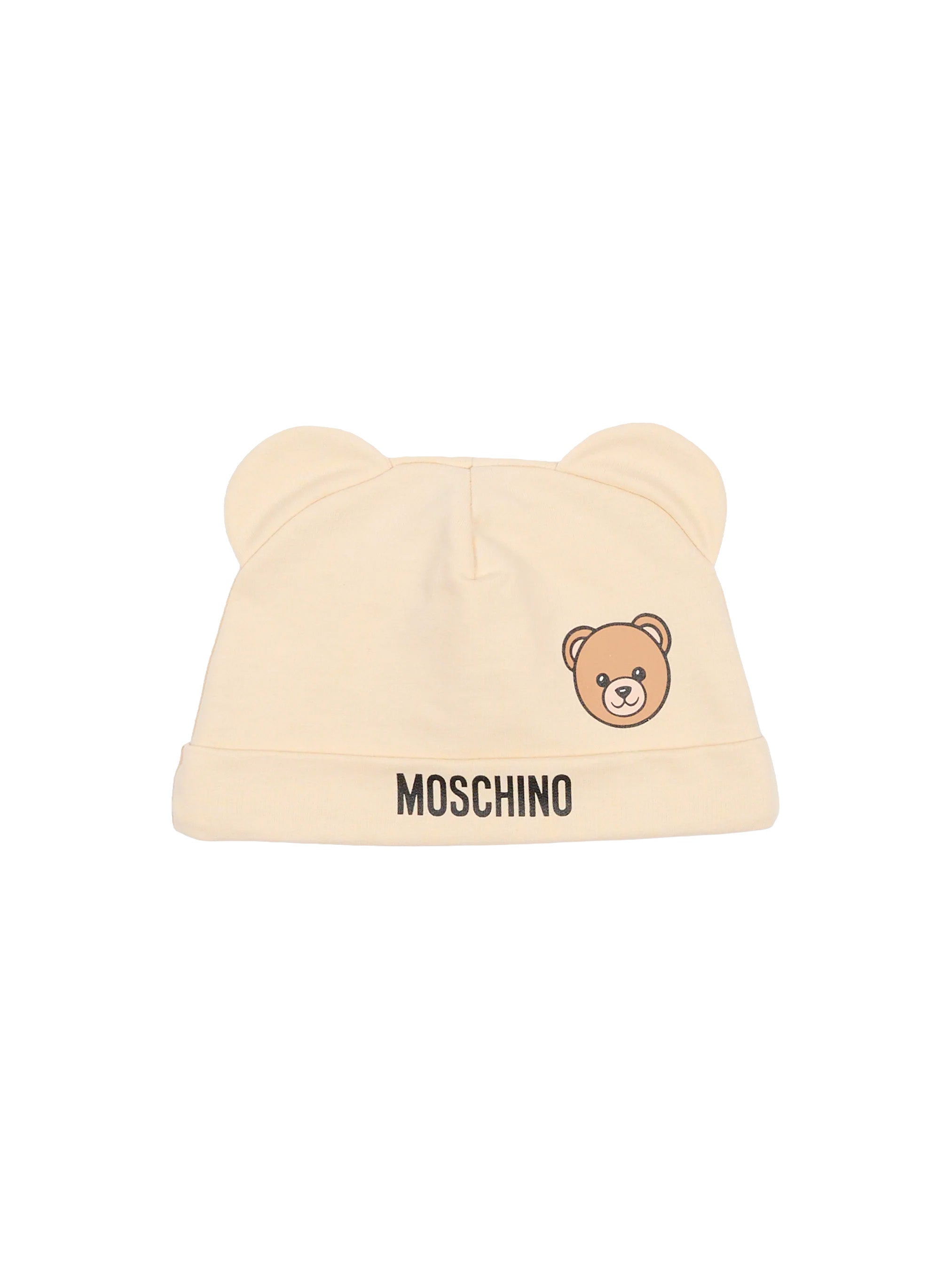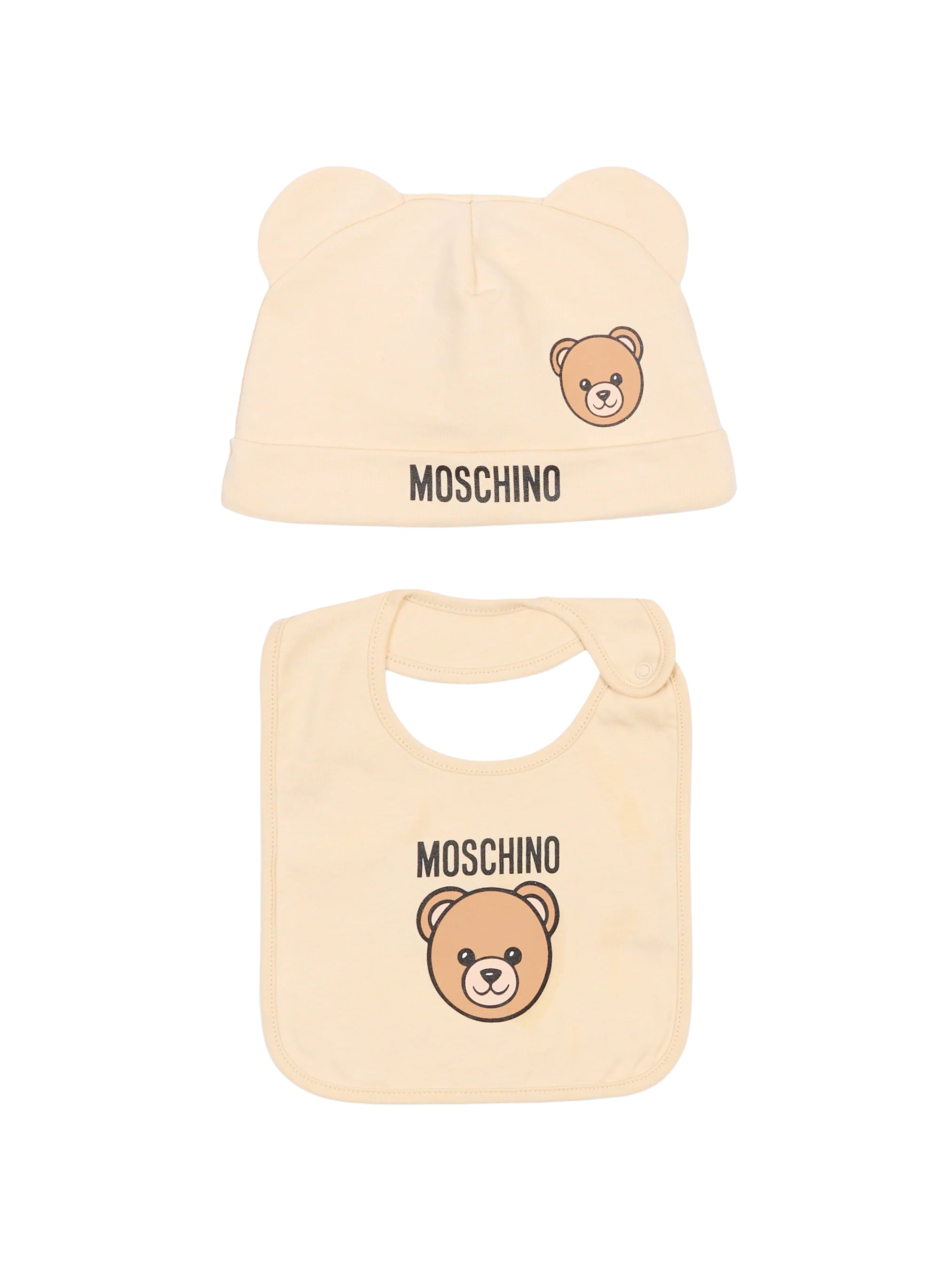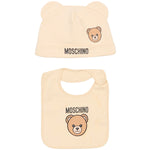 Moschino Kids Set Cappello e Bavetta Beige con Stampa Logo Teddy Unise - Florence Kids