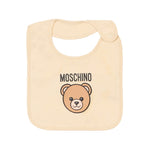 Moschino Kids Set Cappello e Bavetta Beige con Stampa Logo Teddy Unisex per Neonati