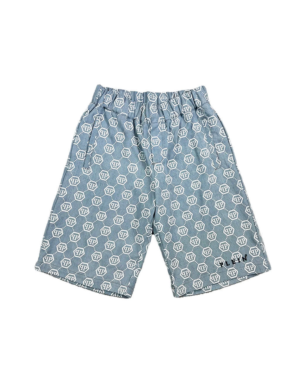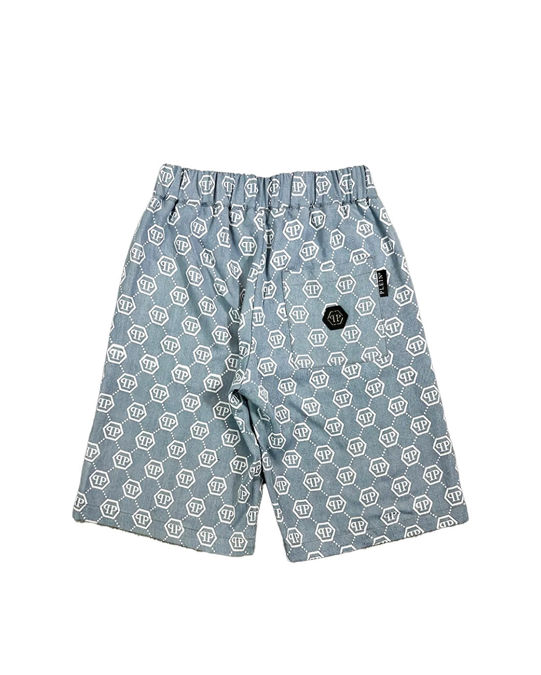 Philipp Plein Kids Bermuda in Denim con Logo All-Over per Bambini