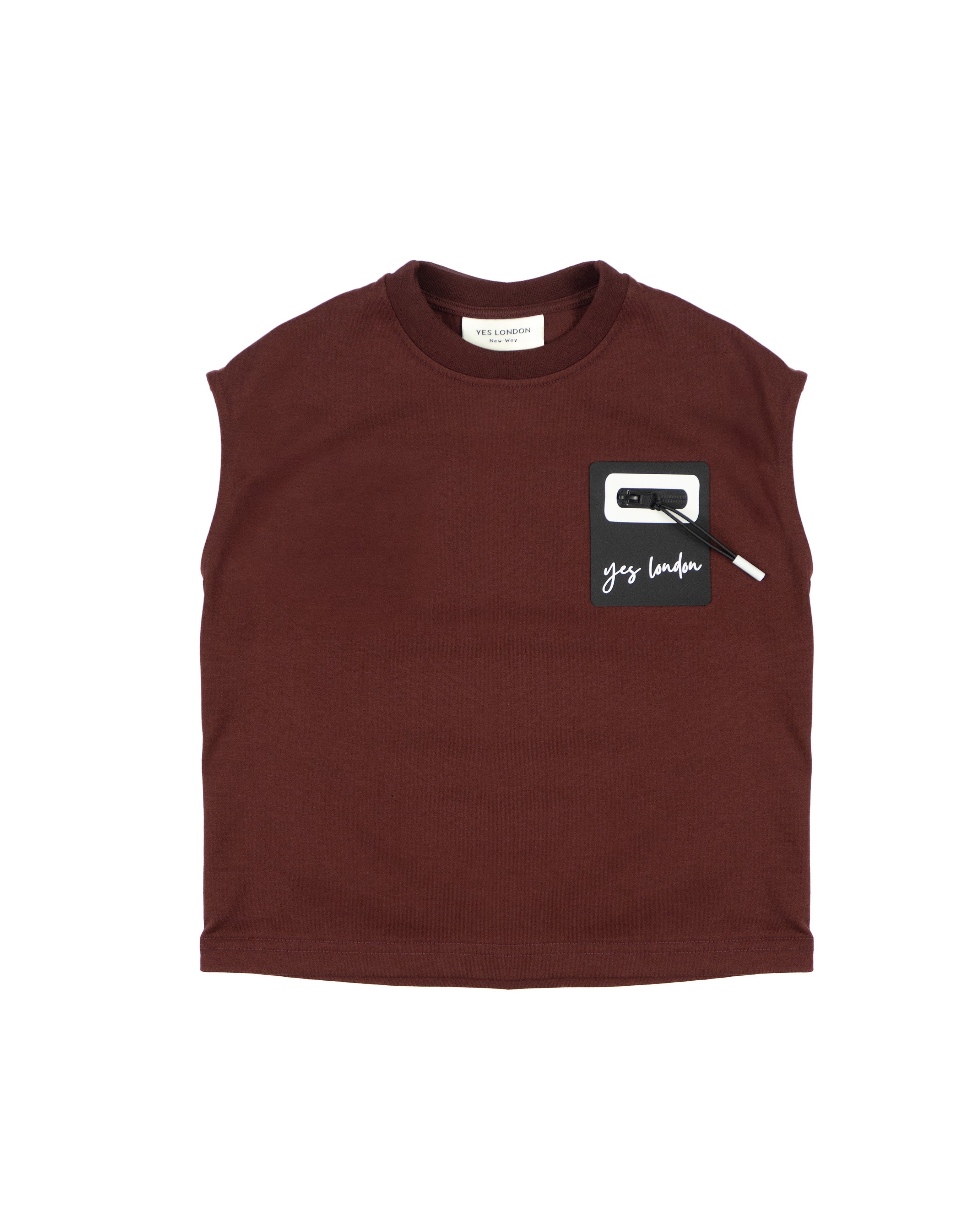 Yes London Kids Canotta Bordeaux con Applicazione Decorativa Logata a Contrasto per Bambini