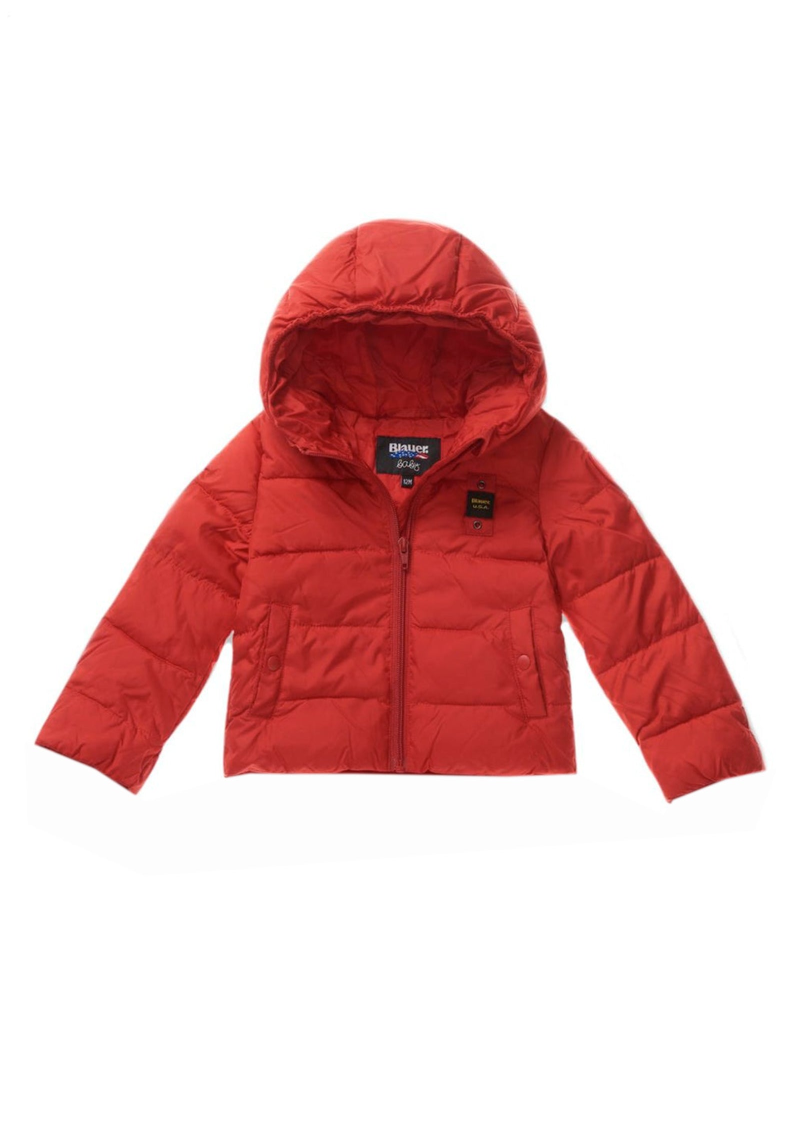 The Baxter Rosso jacket for newborns by Blauer Kids is an elegant and functional quilted down jacket, characterized by horizontal stripes and a modern design. Made of polyester microfiber and padded with Sorona® Aura, it offers warm and light protection, perfect for winter. The fixed hood, the pockets with snaps and the invisible zip closure make the garment practical and comfortable to wear. The cuff with knob and the slider cover on the neck, together with the logo patch, complete the look of this versatile and fashionable outerwear for the little ones.