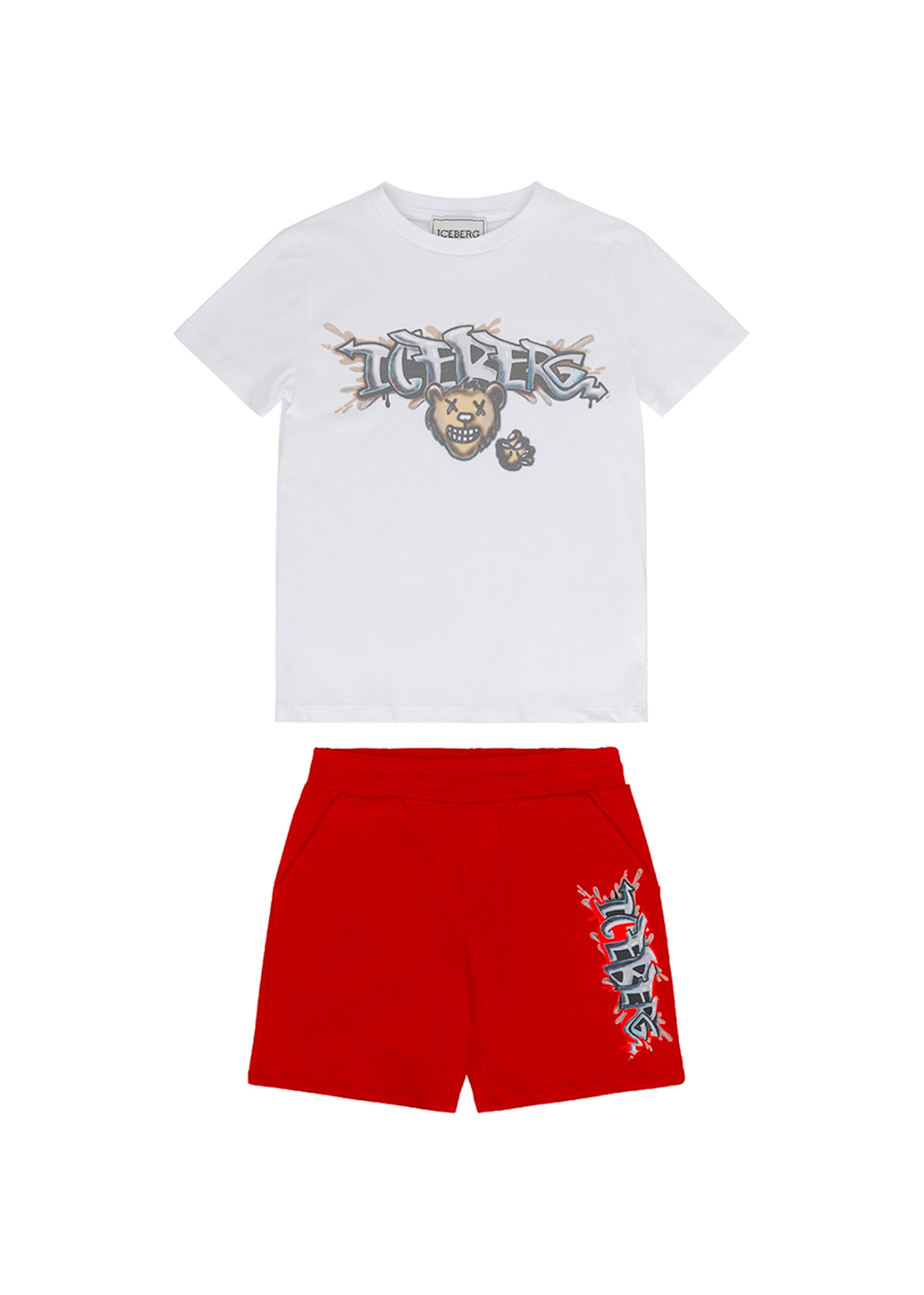 Iceberg Kids T-shirt Bianca con Shorts Rossi con Stampa per Neonati - Florence Kids