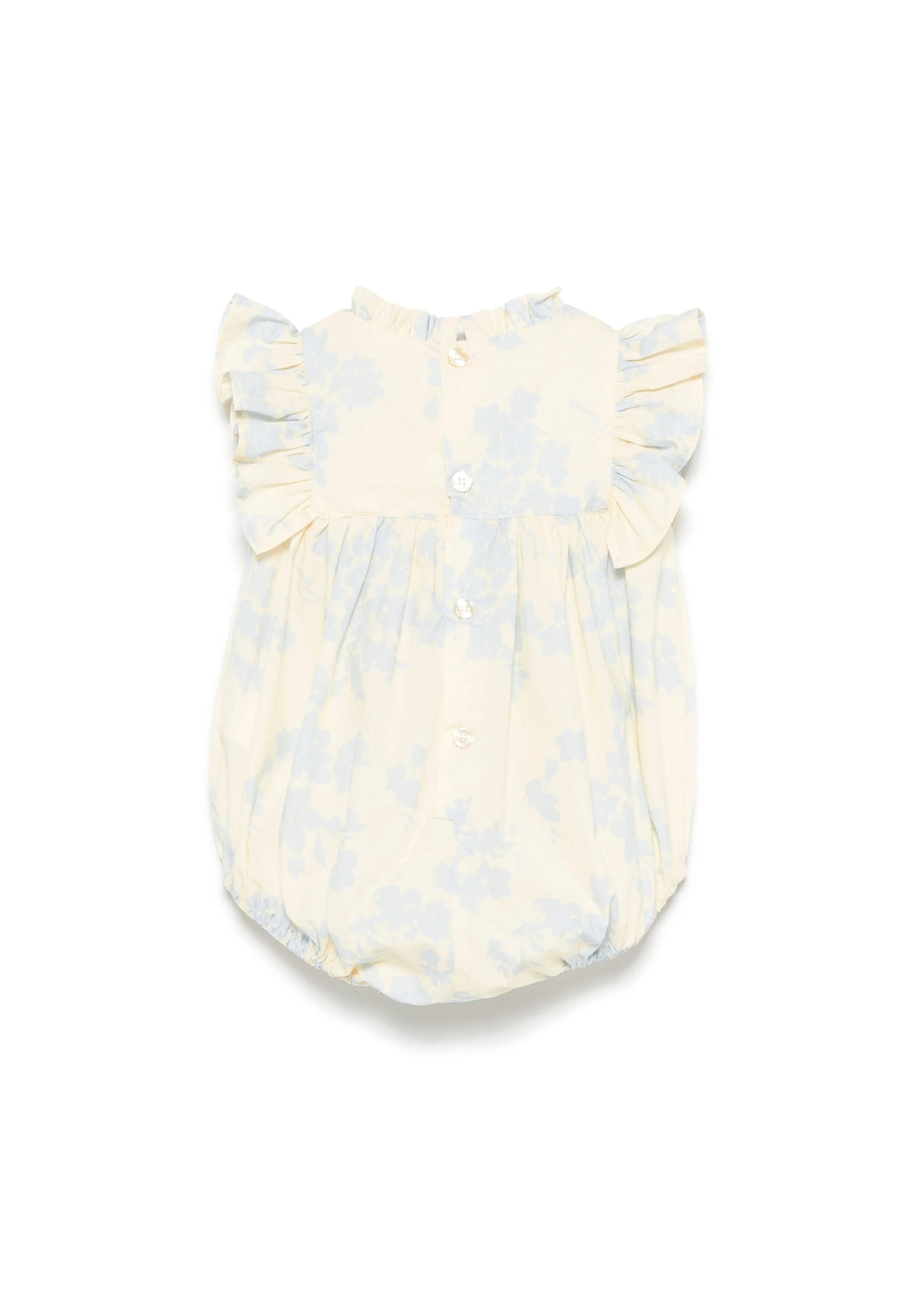 Give your newborn a fresh and elegant look with the Lemon and Blue Romper by Elisabetta Franchi La Mia Bambina. Made of soft cotton, it ensures maximum comfort and breathability for baby's delicate skin. The abstract lemon and blue pattern gives a lively and sophisticated touch, perfect for the summer season. The design is embellished with decorative ruffles, which add a romantic and refined detail. Ideal for an elegant layette or as a special gift idea.