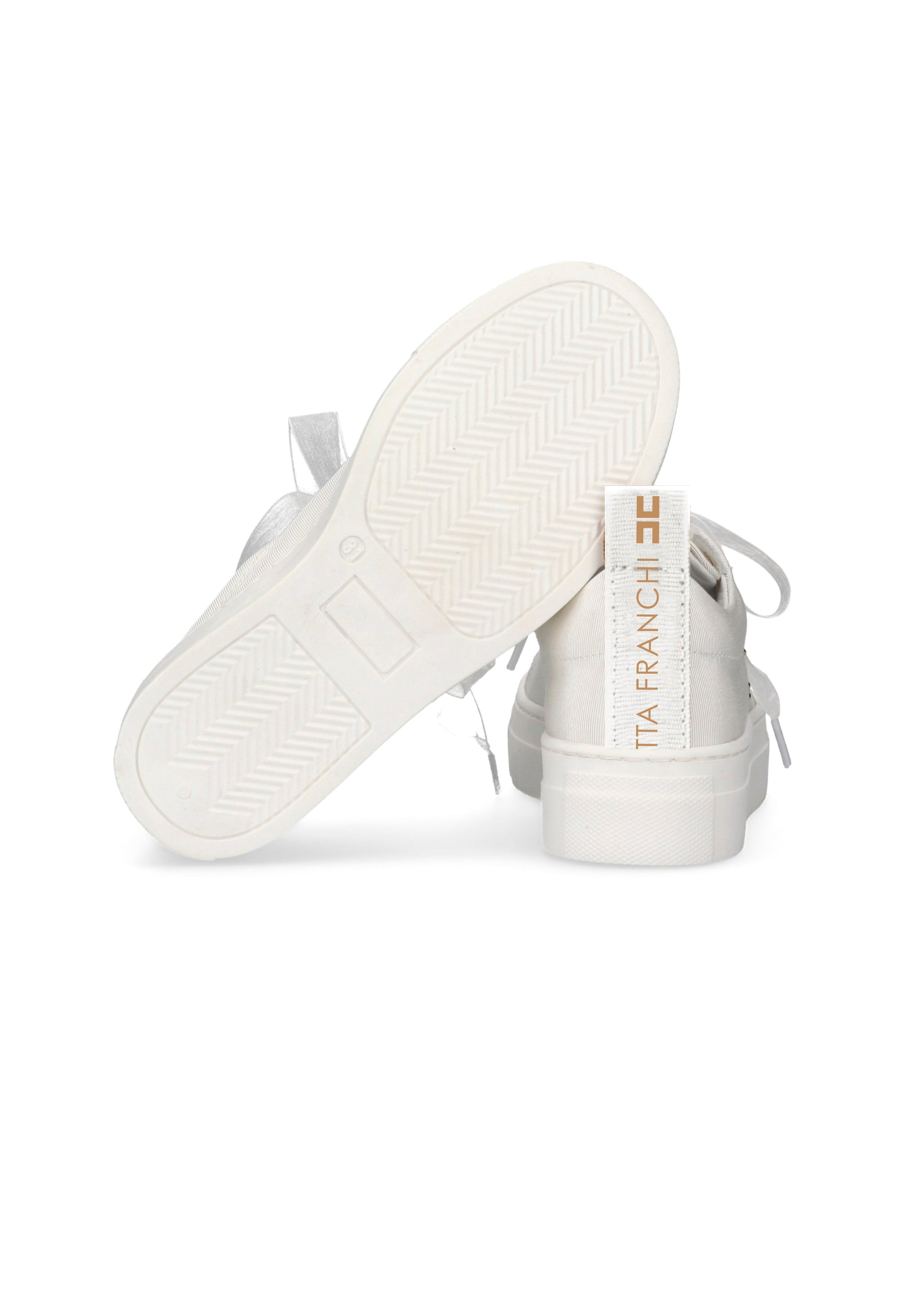 The white Elisabetta Franchi logo sneakers for girls are the perfect balance between elegance and comfort. Featuring a lace-up front fastening, these sneakers offer an adjustable and secure fit. The padding in the ankle guarantees comfort and support, while the logo tab on the heel adds a distinctive, classy detail. The flat rubber sole ensures a stable and durable fit, making these sneakers ideal for leisure time or casual occasions. A versatile piece that completes your little girl's look with a touch of luxury and practicality.