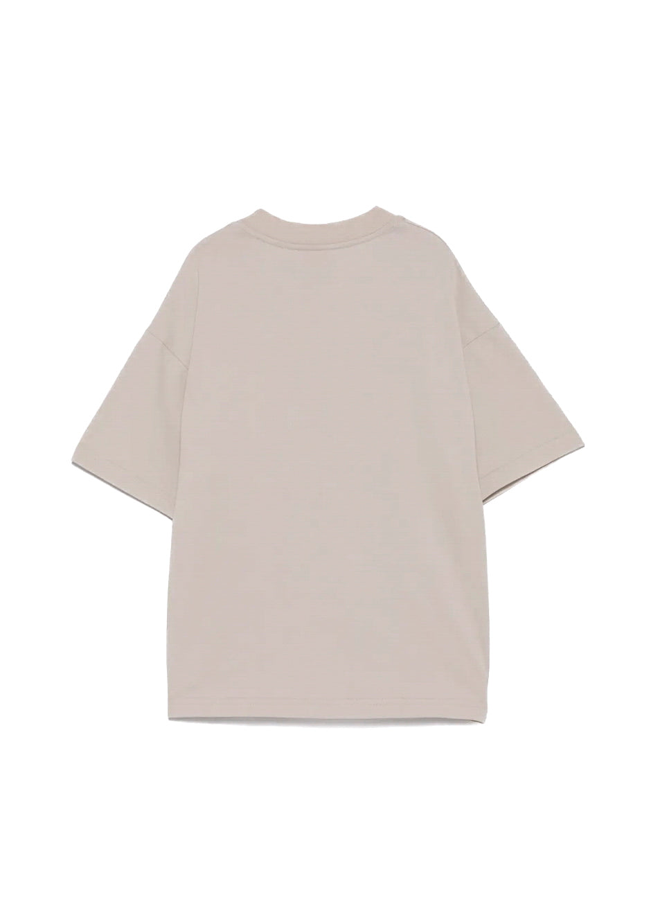 Beige cotton T-shirt with short sleeves, straight hem and a central logo patch. This essential garment offers a comfortable fit and a minimalist yet distinctive look. Perfect for a casual and versatile look, ideal for everyday use. The logo patch adds a modern touch, while the quality of the cotton ensures comfort and resistance. Pair this t-shirt with any trousers or shorts for a casual and fashionable outfit. Made in Italy.