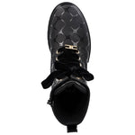 Gli anfibi neri con logo losanga di Elisabetta Franchi La Mia Bambina combinano robustezza e stile in un design pensato per accompagnare ogni avventura quotidiana. Caratterizzati da: