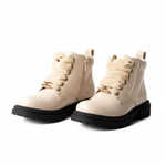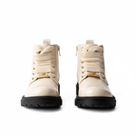 Gli anfibi panna per bambine di Elisabetta Franchi La Mia Bambina sono un mix raffinato di eleganza e praticità. Pensati per accompagnare ogni movimento con stile, presentano: