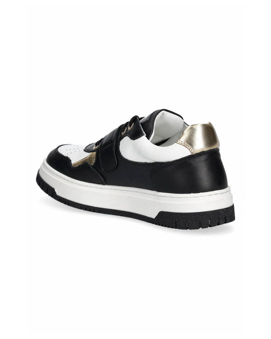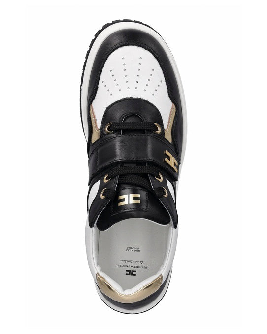 Le sneakers nero-avorio di Elisabetta Franchi La Mia Bambina incarnano l’eleganza moderna e il più alto comfort per le piccole camminatrici. I dettagli includono: