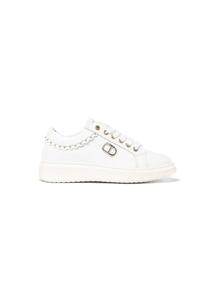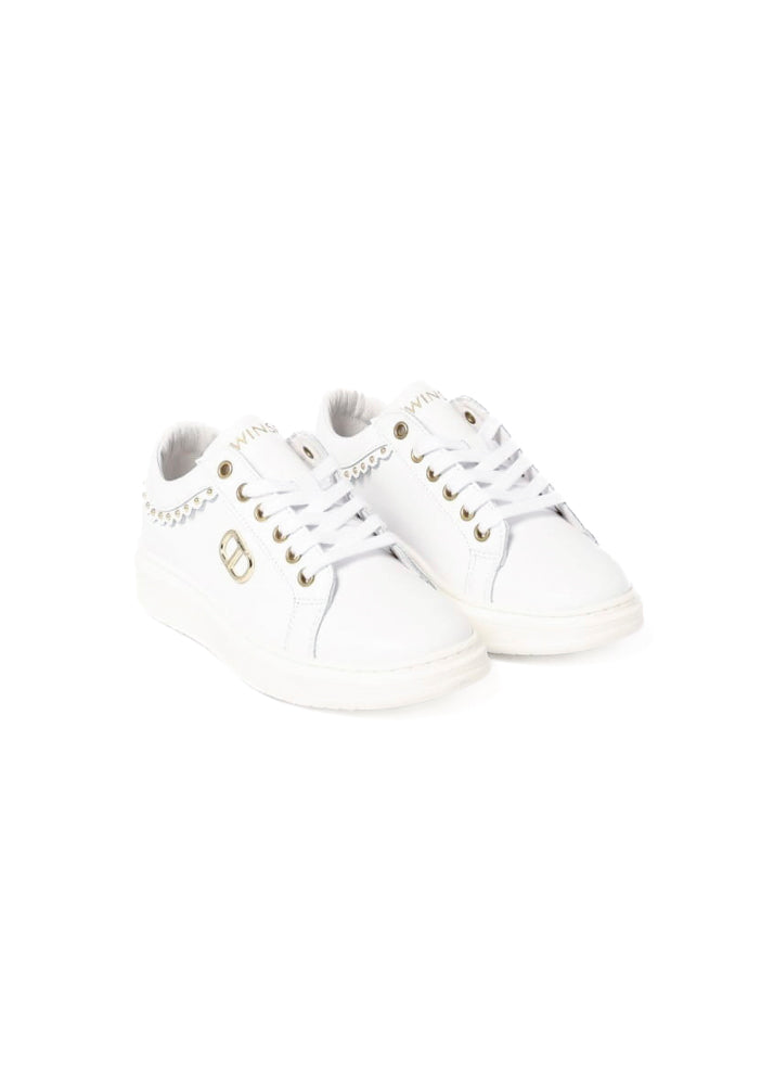 Twinset Kids White Shoes with Oval T Plaque for Girls