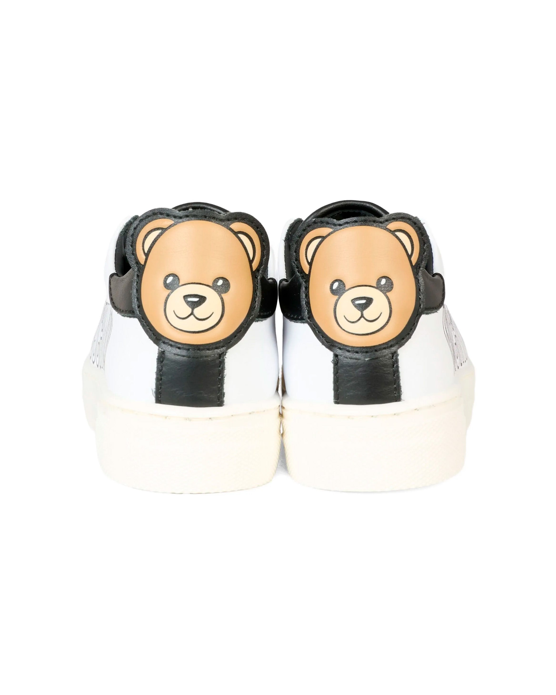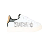 Scopri le Moschino Kids sneakers con logo Teddy e scritta laterale per bambini, perfette per outfit dinamici e alla moda.